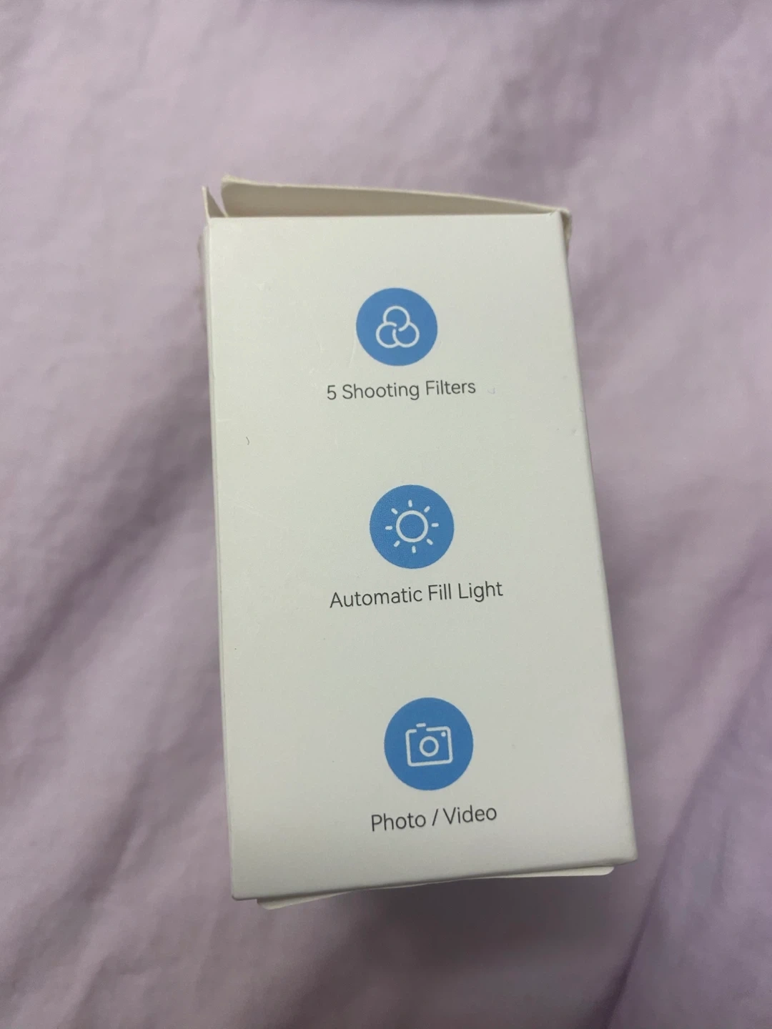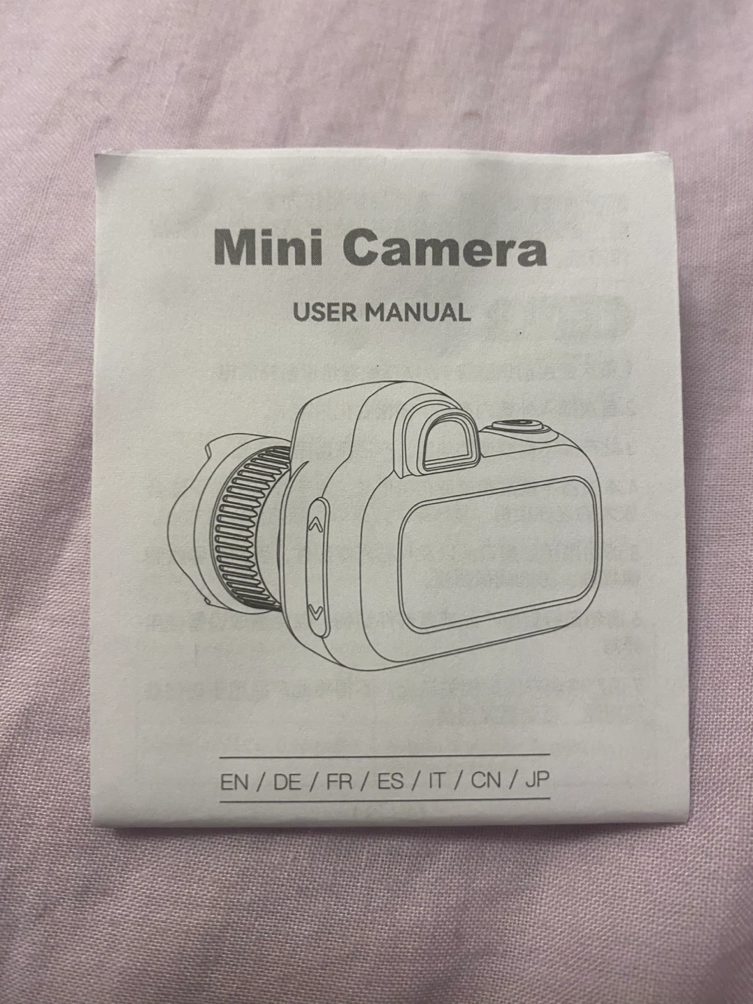 Mini camera with a user manual, USB cable, offers 5 shooting filters and an automatic fill light. This compact camera is great for capturing quick photos or videos on the go!