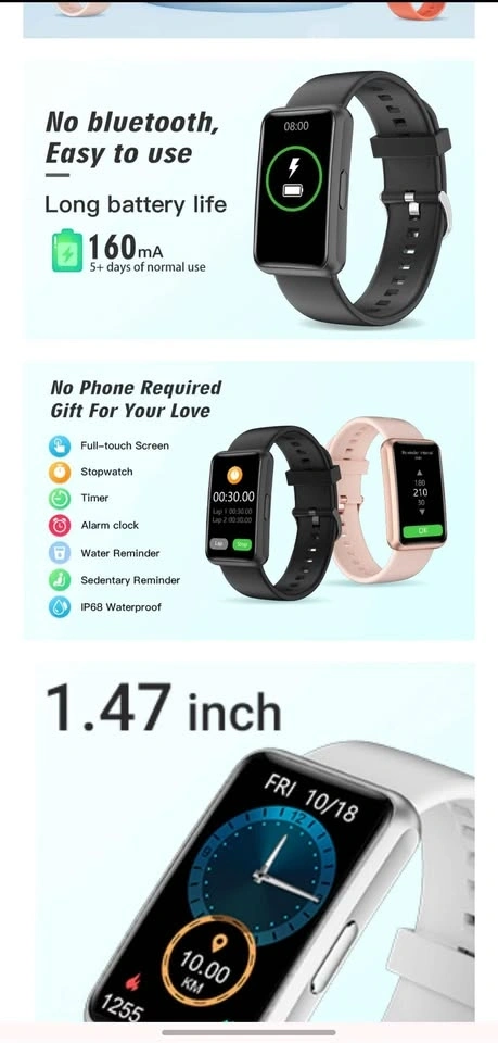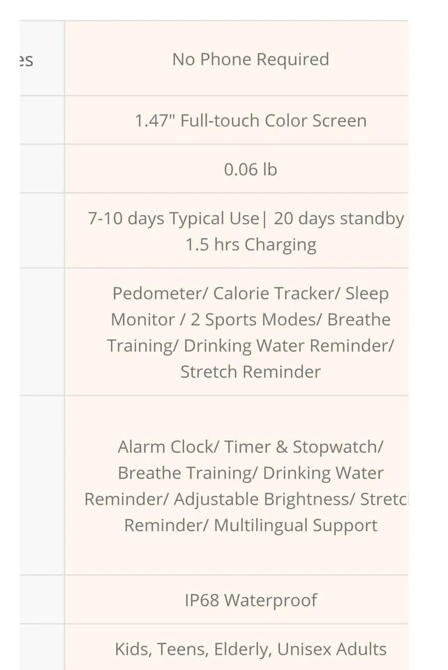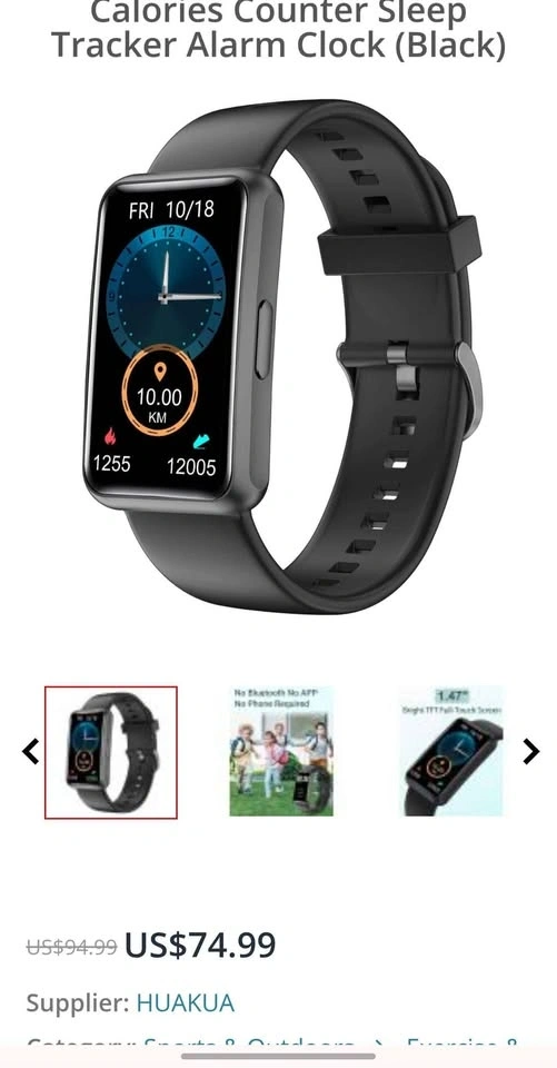 Keep track of your health the easy way! This is a HUAKUA brand fitness tracker smartwatch with a clean white band. The absolute best part about this specific watch is that it requires NO smartphone app and NO Bluetooth connection to work! It is completely standalone, which makes it incredibly simple to set up and perfect for kids, teens, or anyone who doesn't want to mess with complicated phone syncing. It features a bright touchscreen and tracks your steps, calories, sleep, and can be used as a vibrating alarm clock. These retail online for $75 USD, so grab a bargain while it's here!