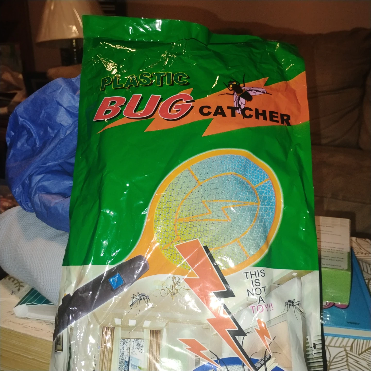 This electric insect swatter is green and powered by DC 3V. It's designed to zap mosquitoes and flies with static force. The net is safe to use and won't give you a shock.