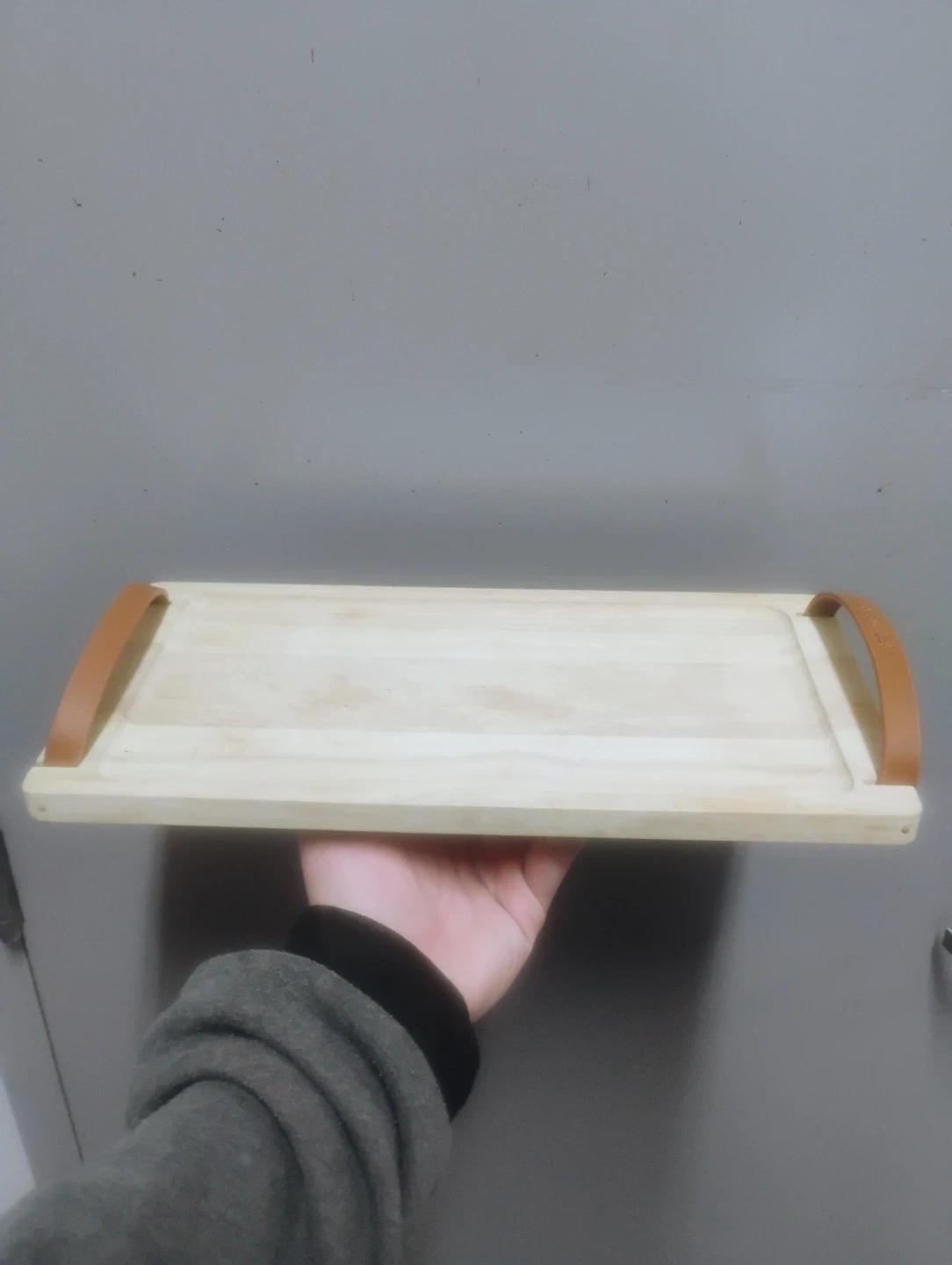 This Nespresso serving tray is made from light-coloured wood. It features easy-to-grip brown leather handles on each end. Perfect for serving drinks or snacks.