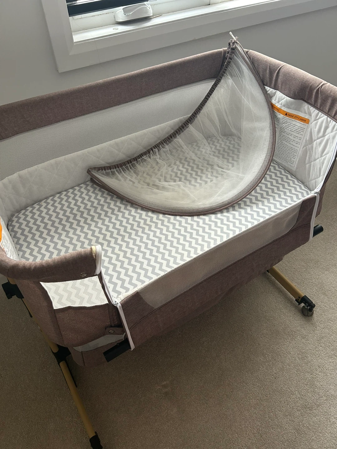 This bassinet is perfect for keeping your little one close. It features mesh sides for breathability and includes a mosquito net for added protection. Easy to manoeuvre with its wheeled base.
