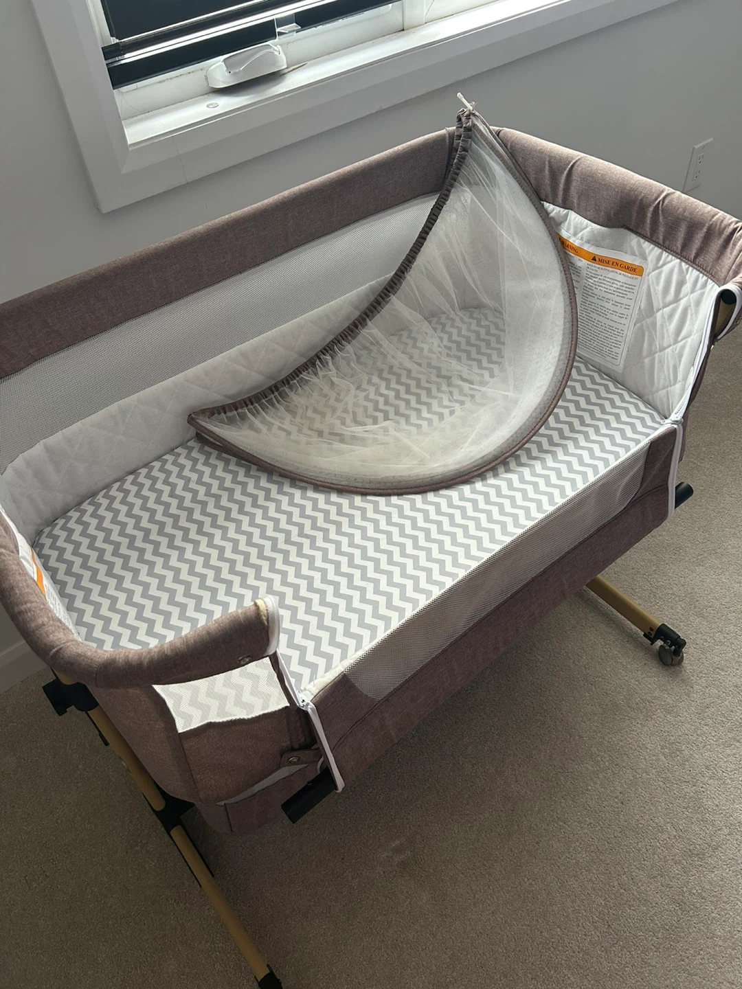 This bassinet is perfect for keeping your little one close. It features mesh sides for breathability and includes a mosquito net for added protection. Easy to manoeuvre with its wheeled base.