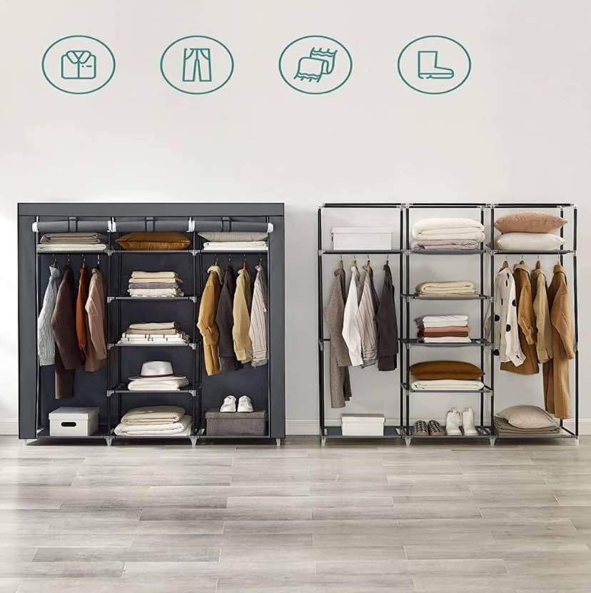 Pick up: Brock Road and Rex Heath Drive in Pickering. SONGMICS Fabric Wardrobe, Foldable Closet with Hanging Rail, Clothes Rack, Storage Organizer for Bags, Toys, Shoes, 175 x 150 x 45 cm, Gray.