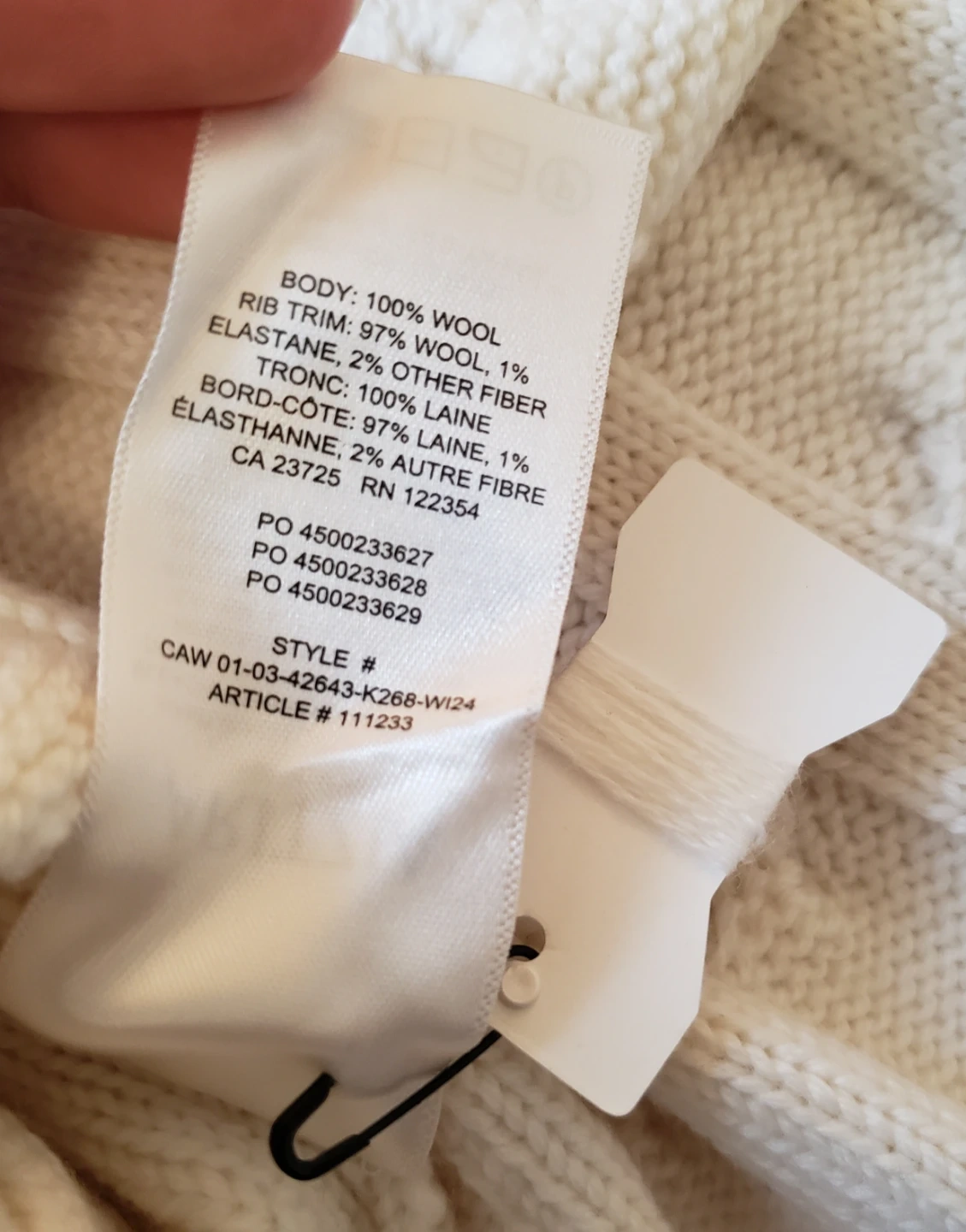 Cozy up in this lovely cream-coloured cropped sweater from Babaton! It's a size xs and made from a blend of 100% wool and rib trim of 97% wool and 2% elastane.