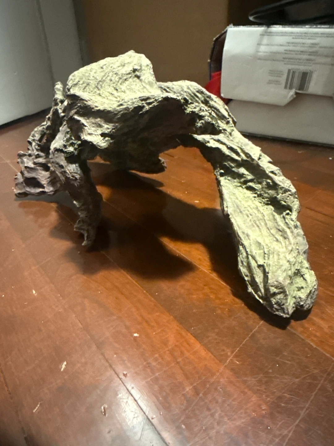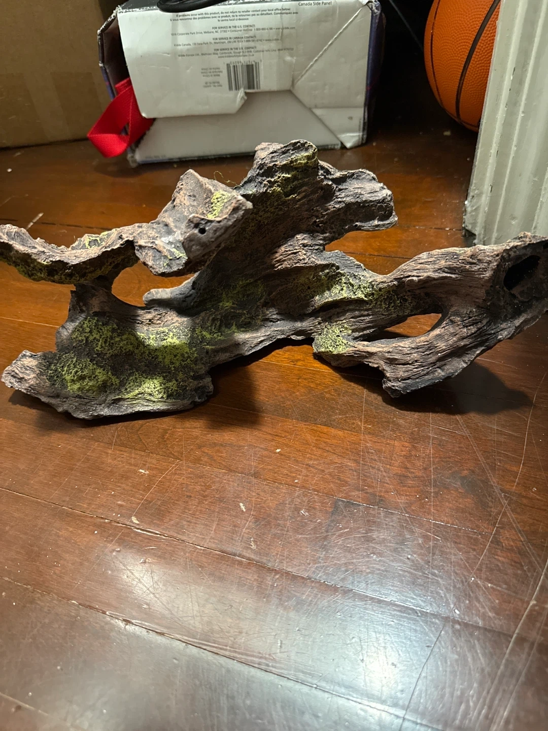 Selling a piece of aquarium driftwood, perfect for adding a natural touch to your fish tank! It's in great shape and ready to be placed in your aquarium. It has a unique shape with holes and textures, providing a great hiding spot for your fish and other aquatic pets