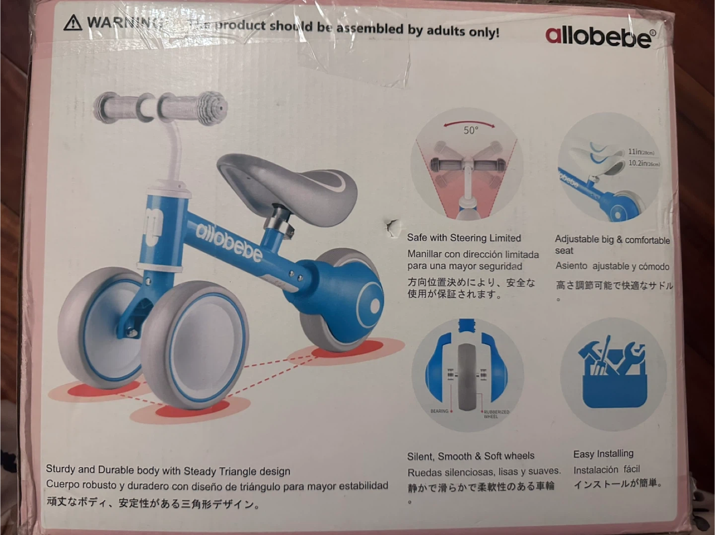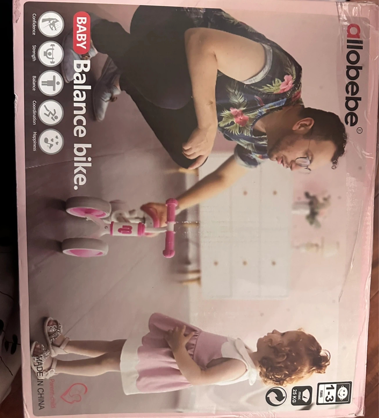 This Allobebe balance bike is perfect for little ones aged 1-3 years! It's designed with a sturdy and durable body and a steady triangle design. The bike also features silent, smooth, and soft wheels, making it easy and safe for your child to learn balance and coordination.
