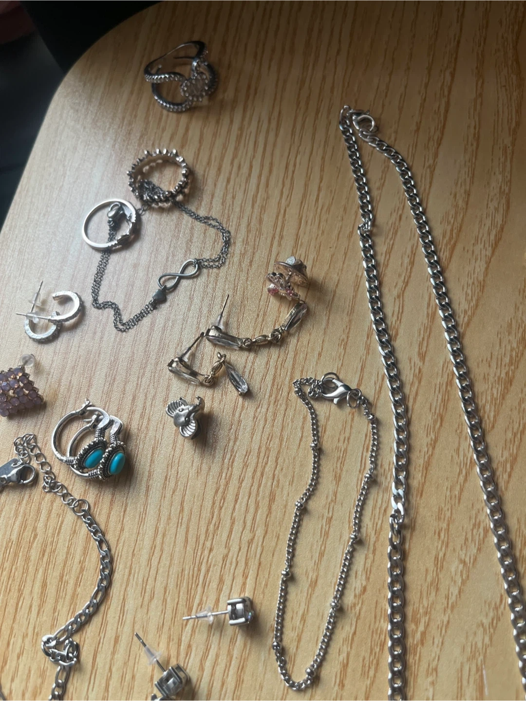 Selling a collection: sterling silver turquoise earrings and one nose jewelry the rest is stainless steel jewellery! Includes rings, earrings, and necklaces in various styles and designs. Perfect for adding some sparkle to your outfits!