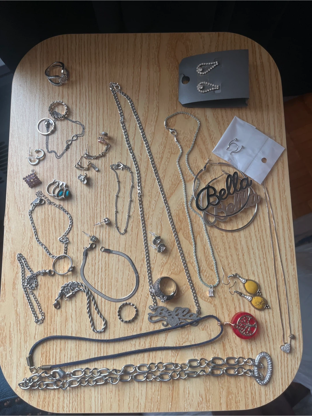 Selling a collection: sterling silver turquoise earrings and one nose jewelry the rest is stainless steel jewellery! Includes rings, earrings, and necklaces in various styles and designs. Perfect for adding some sparkle to your outfits!