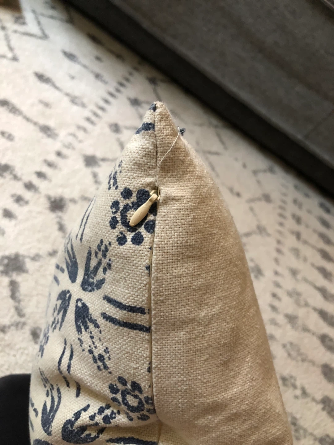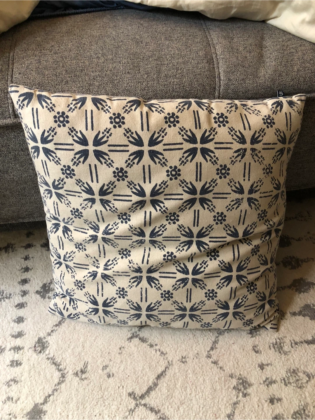 Add a touch of style to your living space with this decorative throw pillow! With zipper to wash. The pillow features a beautiful blue floral pattern on a beige background. It's in great condition and ready to enhance your home decor
