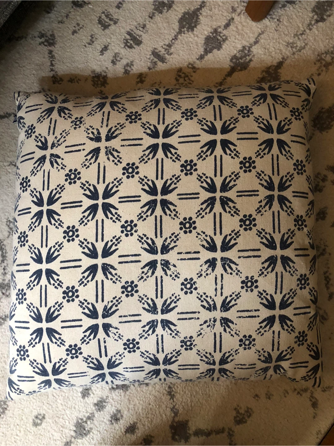 Add a touch of style to your living space with this decorative throw pillow! With zipper to wash. The pillow features a beautiful blue floral pattern on a beige background. It's in great condition and ready to enhance your home decor