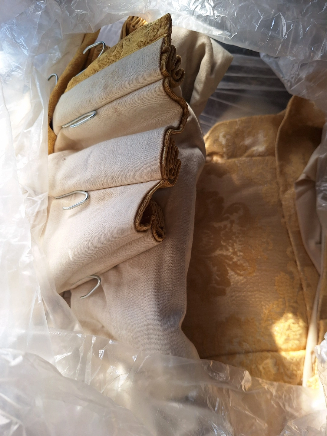 Set of vintage curtains. Gold brocade pattern.