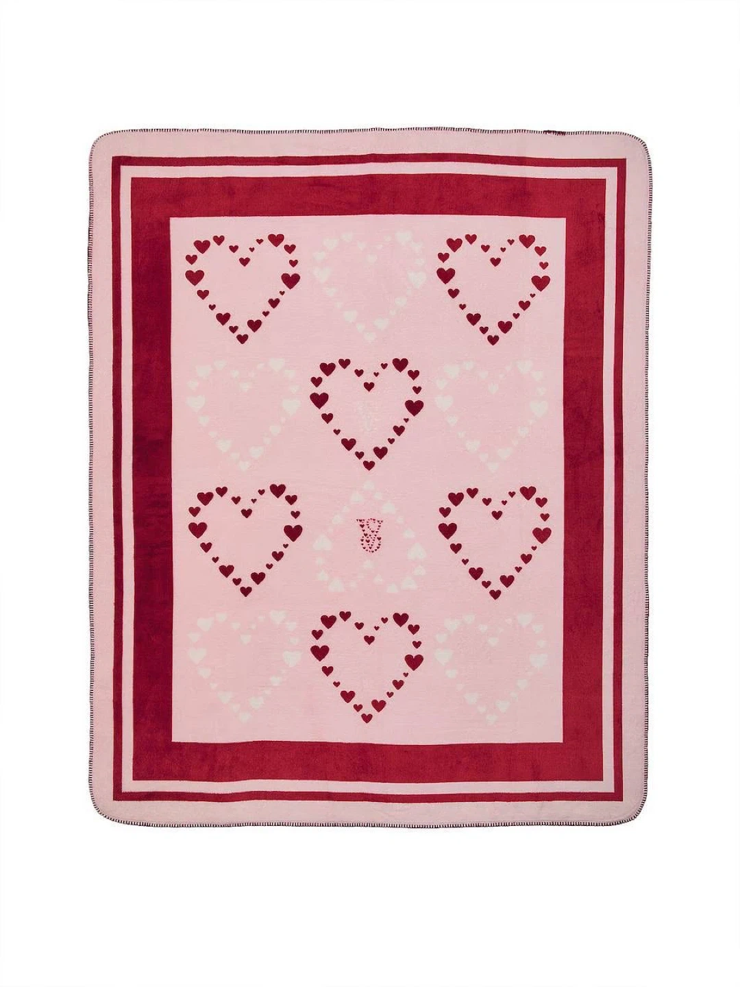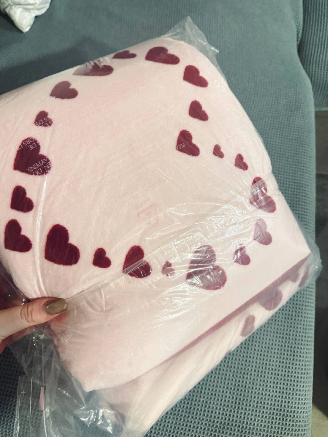 Ultra-soft blanket with a cute heart print, made with cozy fleece on one side and smooth velour on the other. Perfect for your bed, sofa, or as a gift.