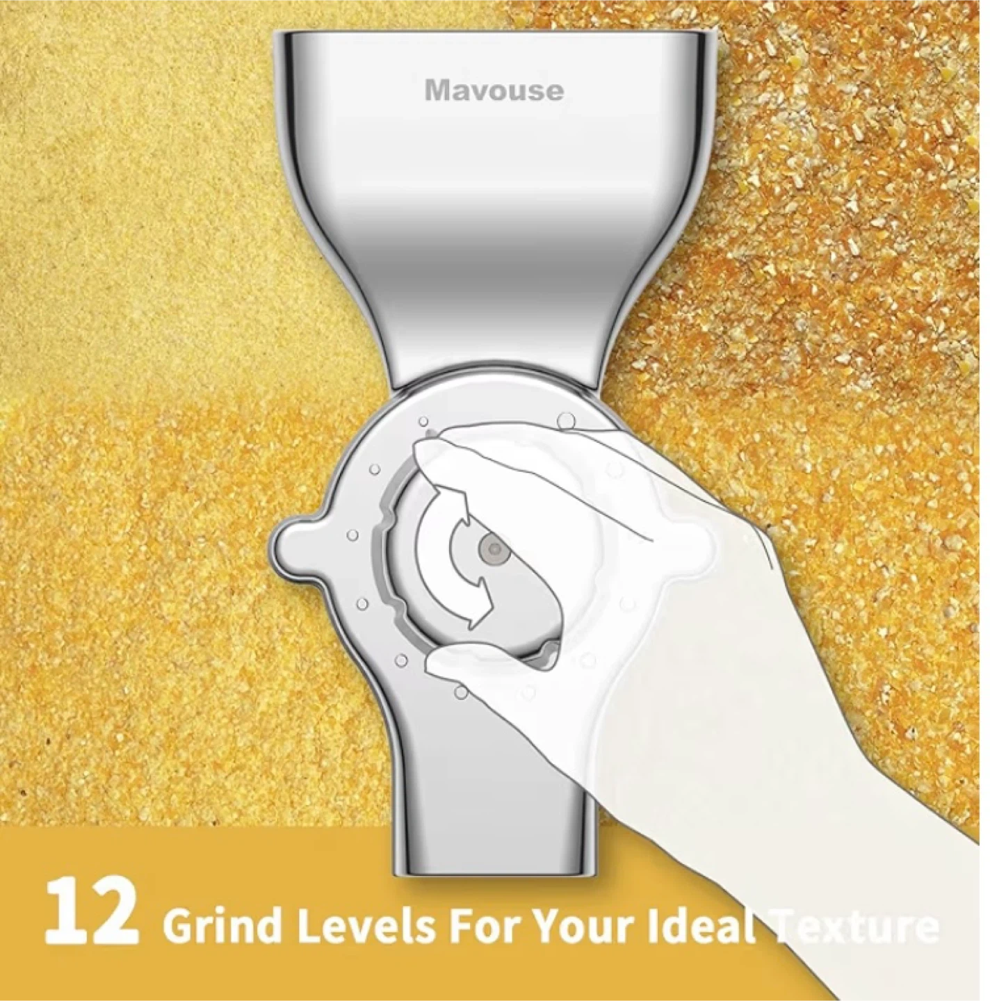 All-Metal Design: Precision metal die-casting ensures a robust and durable construction for maximum efficiency when grinding hard grains.