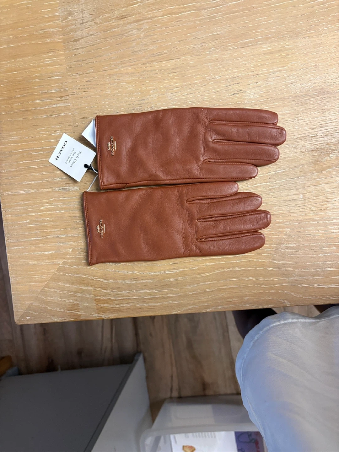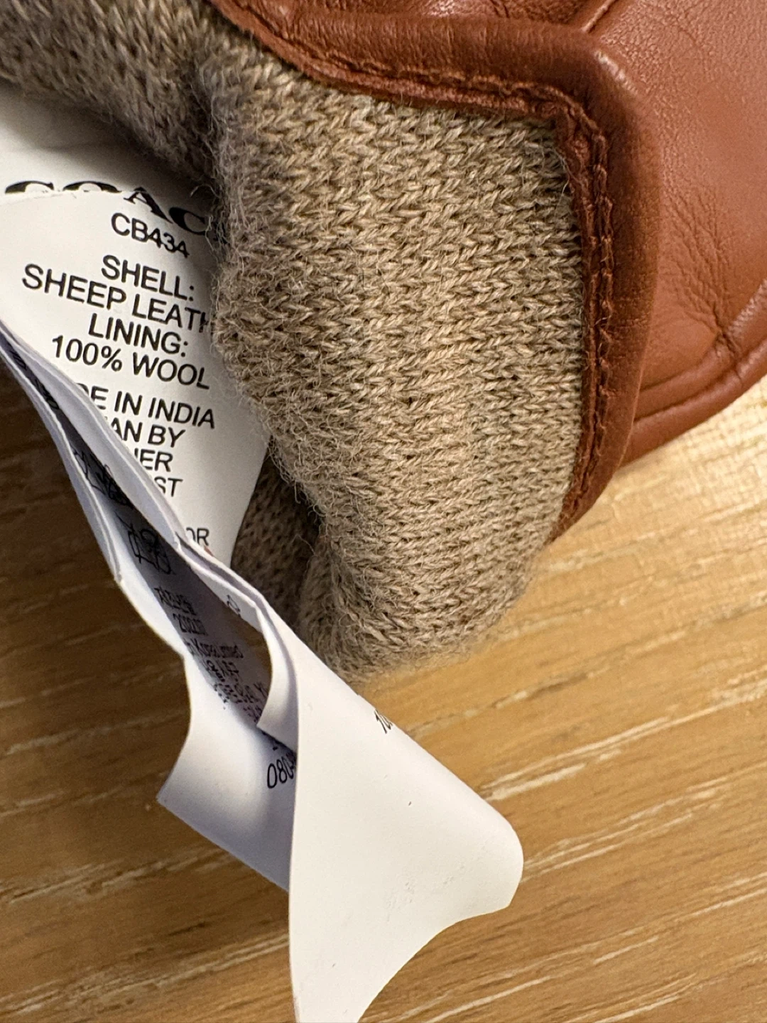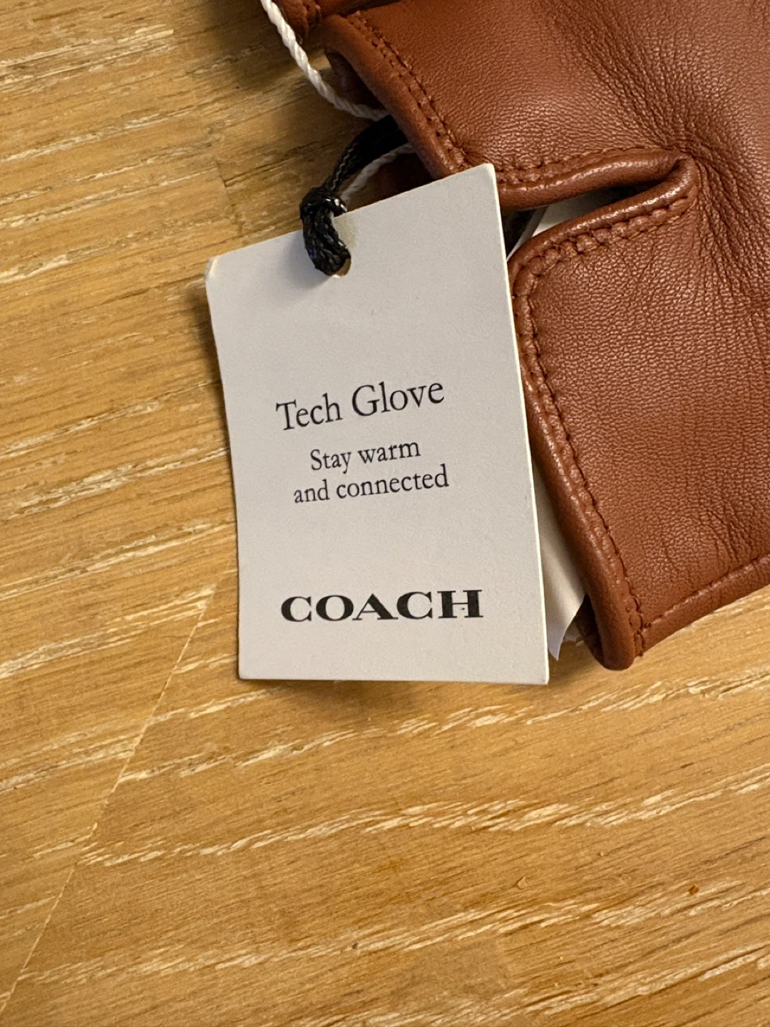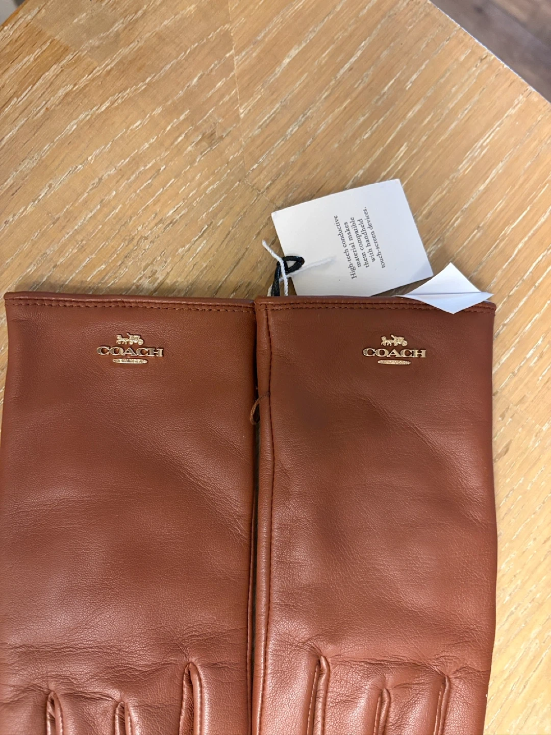 These are a pair of new Coach Tech Gloves. The gloves are made of sheep leather for the shell and 100% wool for the lining. The model number is CB434.