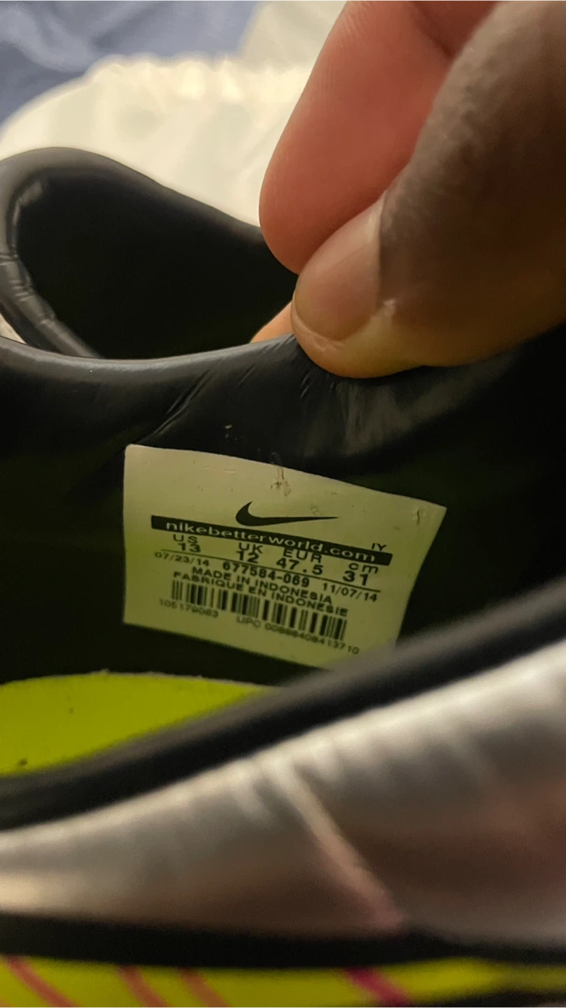 Silver Nike Hypervenom Phantom II FG soccer cleats with pink and yellow accents. These cleats have a unique textured upper. Includes a Nike drawstring bag. Great for playing on firm ground pitches!