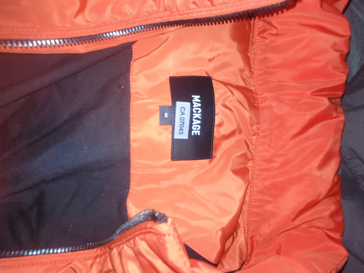 I'm selling an orange Mackage jacket in size 40. It's in great condition and ready for a new owner! Perfect for staying stylish and warm during cooler weather