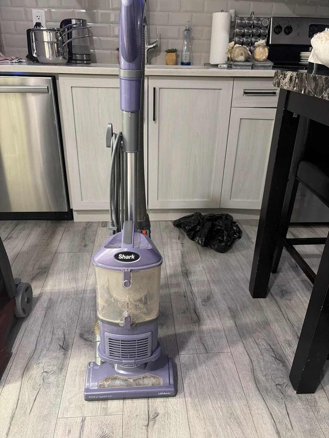 This Shark Navigator vacuum features Lift-Away technology for convenient portable cleaning. It's purple and designed for effective floor care. Great for tackling everyday messes around the house!