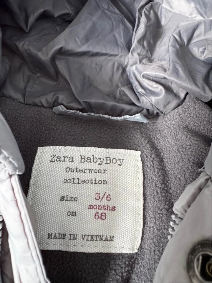 This Zara BabyBoy puffer jacket is super cute, super cozy, and perfect for winter. Size 3–6 months (fits up to ~68 cm). Sleek grey colour — matches everything. Thick, warm, and lightweight. Snap buttons + zipper = easy to put on. Excellent condition — like new.