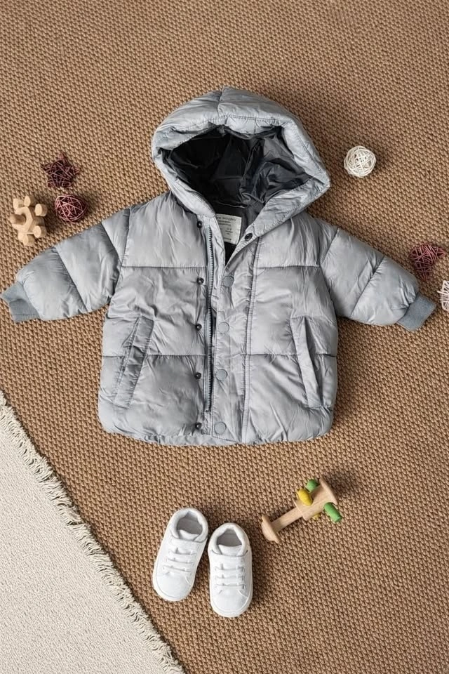 This Zara BabyBoy puffer jacket is super cute, super cozy, and perfect for winter. Size 3–6 months (fits up to ~68 cm). Sleek grey colour — matches everything. Thick, warm, and lightweight. Snap buttons + zipper = easy to put on. Excellent condition — like new.