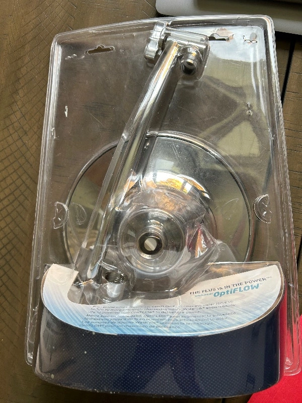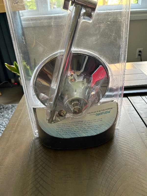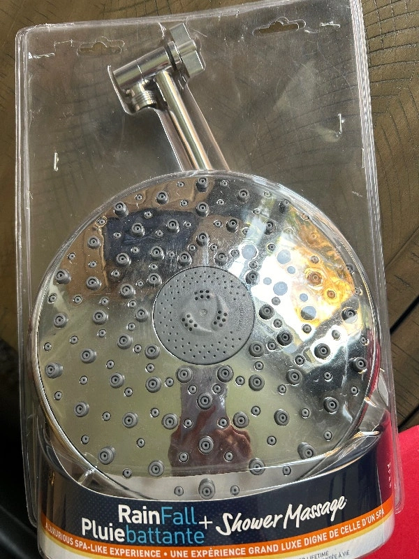 Never used. In original packaging, but has been opened. Chrome, 8” diameter head. Provides a range of showering sensations from rainfall to a relaxing pulsating massage. Adjustable height, anti-clog nozzles, easy installation. Pickup in Brampton, near Queen and Kennedy.