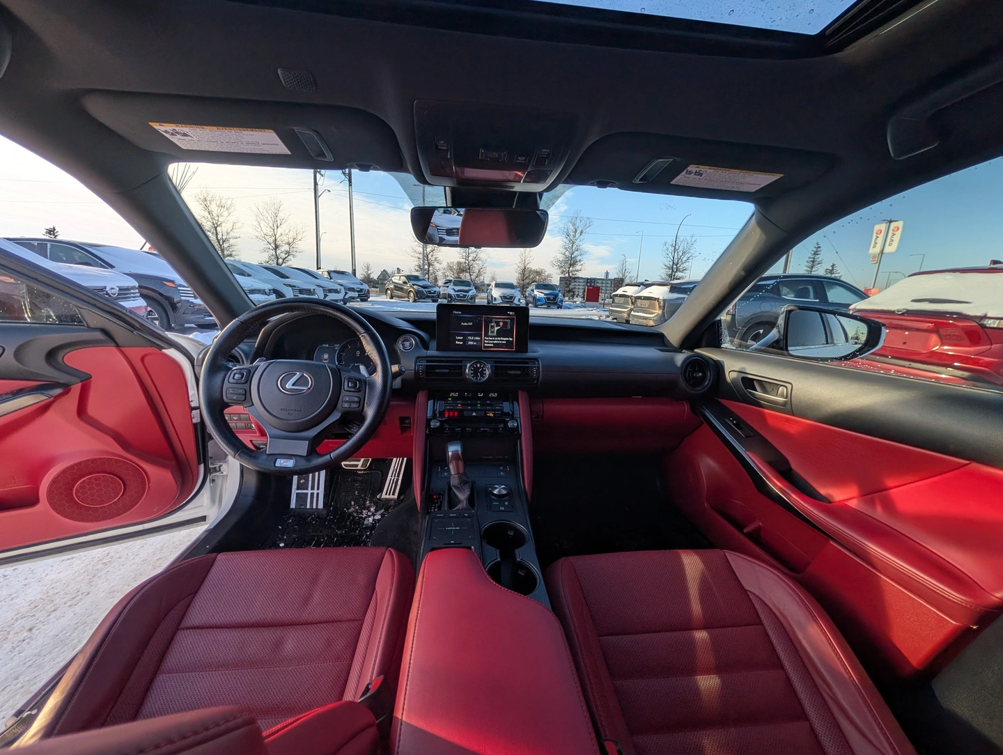 - Red leather interior