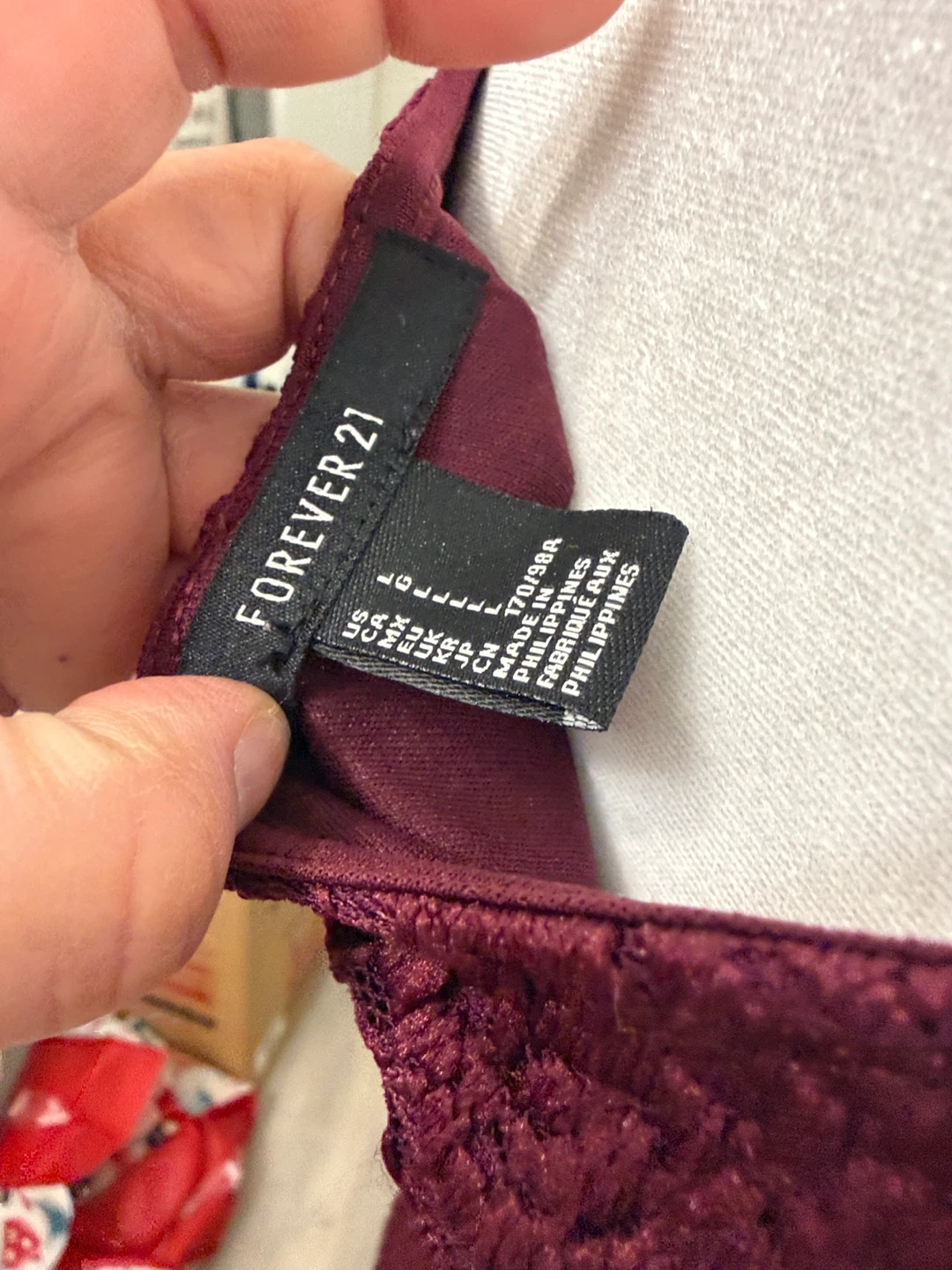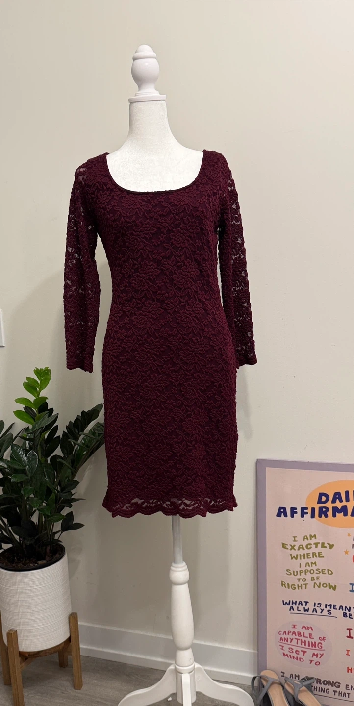 Buy & SellForever 21 Burgundy Lace DressForever 21 Burgundy Lace Dress$15A lovely burgundy lace dress from Forever 21. It features long sleeves and a scoop neckline. Size is large.ConditionGoodSizeLargeBrandForever 21WHERE TO MEETNations ExperienceView MapSELLERverifiedStephStockyards District41537 reviews0 chats·0 favorites·11 viewsSEND CHAT TO SELLERHi Steph! I’m interested in your listing.Hi Steph! I’m interested in your listing.Get the Karrot app to chatSign In to chat
