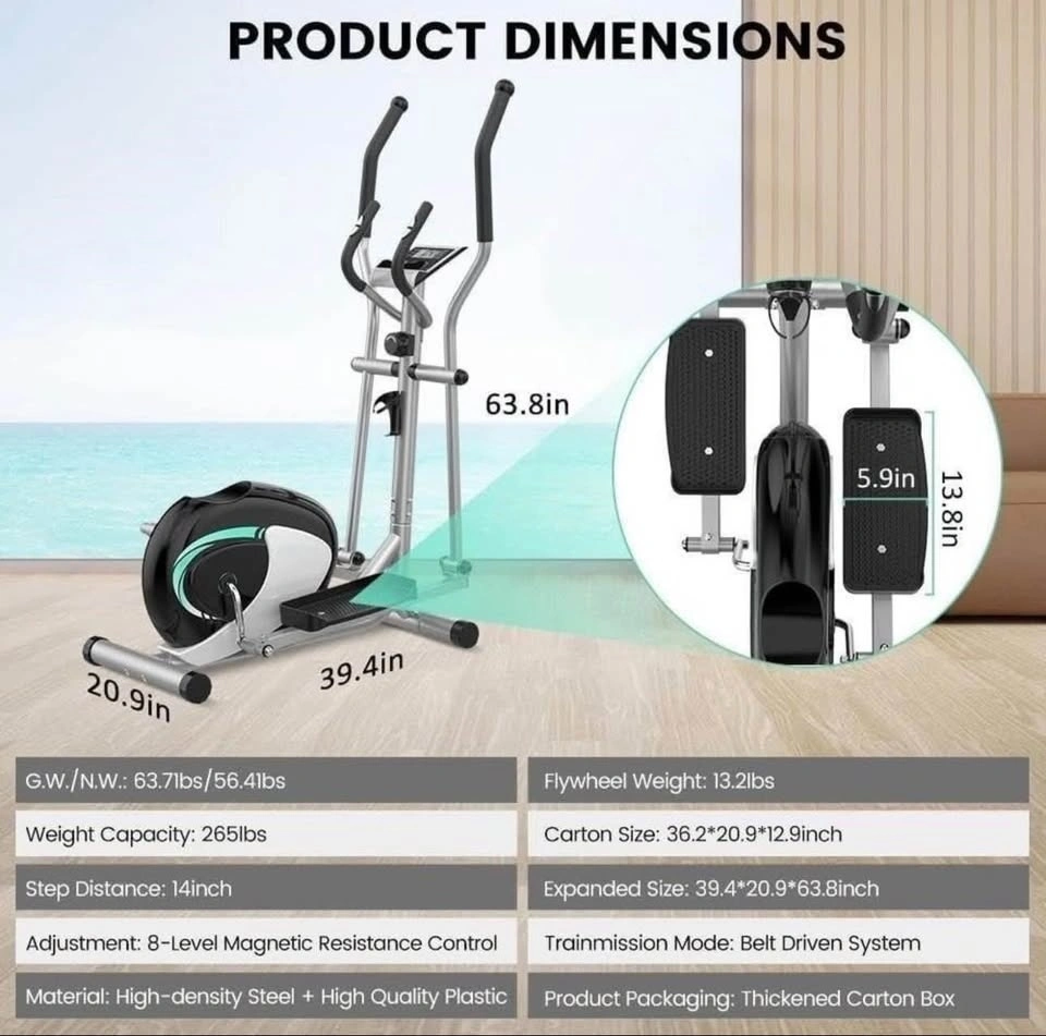Elliptical Exercise Machine - 8 Resistance Levels, 265LBS