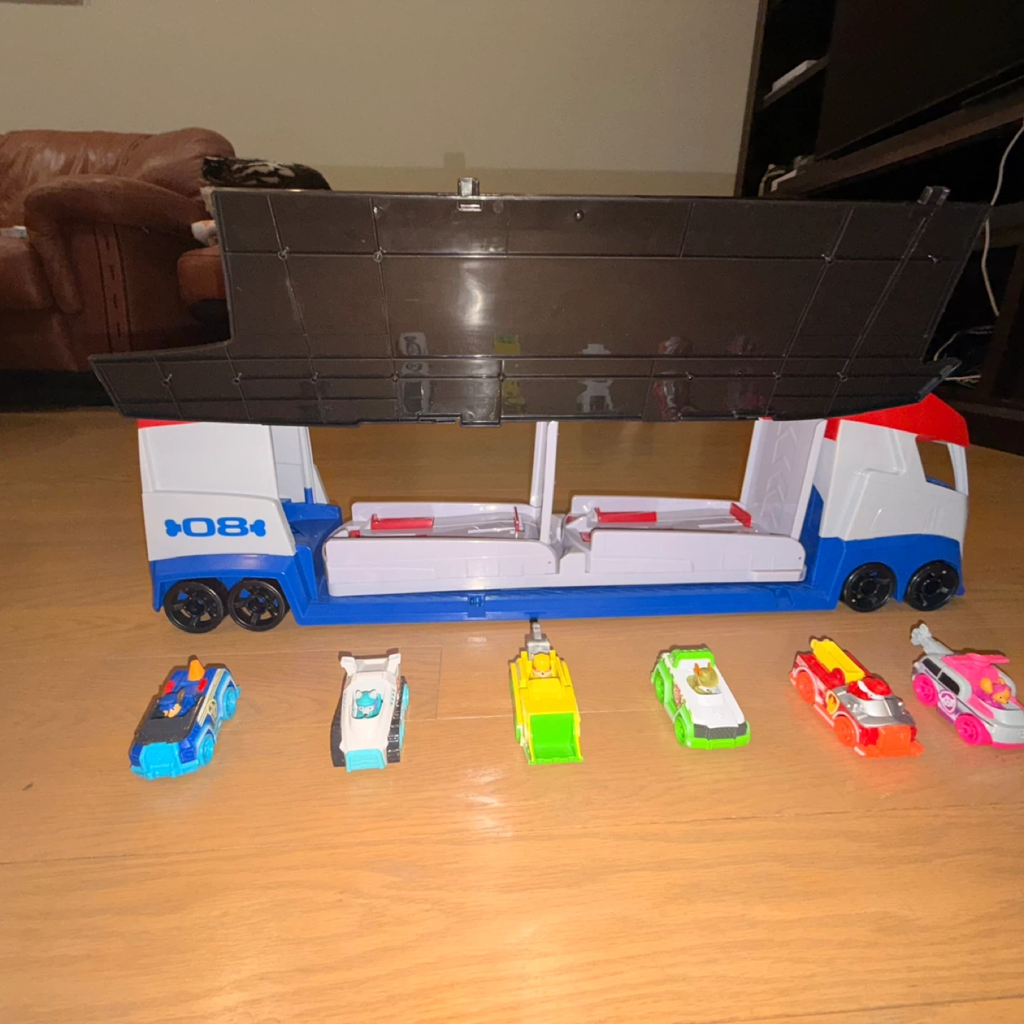 This Paw Patrol truck is ready for new adventures! It's in used condition but has lots of life left for imaginative play. All the pups are included to ride along.