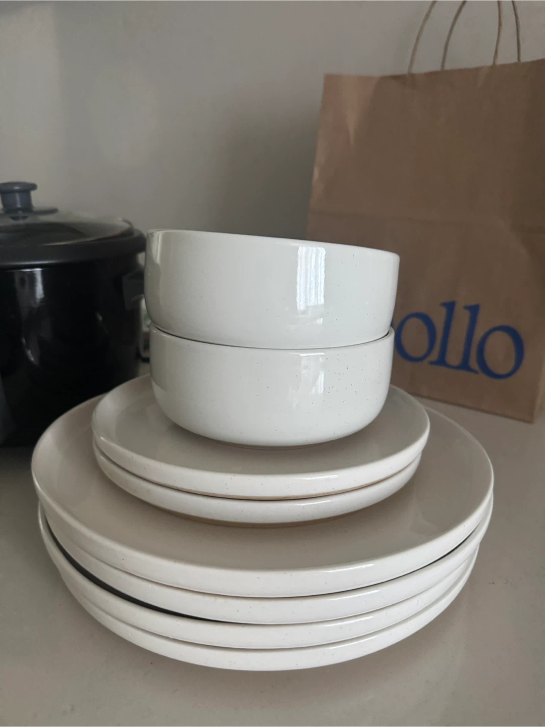 Selling a Famiware Milkyway dinnerware set! It includes 12 pieces: plates, bowls, and dishes, perfect for a set of 4. The color is white and it's in great condition. This set is a sustainable choice for your dining needs.