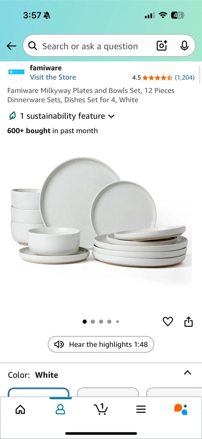 Selling a Famiware Milkyway dinnerware set! It includes 12 pieces: plates, bowls, and dishes, perfect for a set of 4. The color is white and it's in great condition. This set is a sustainable choice for your dining needs.