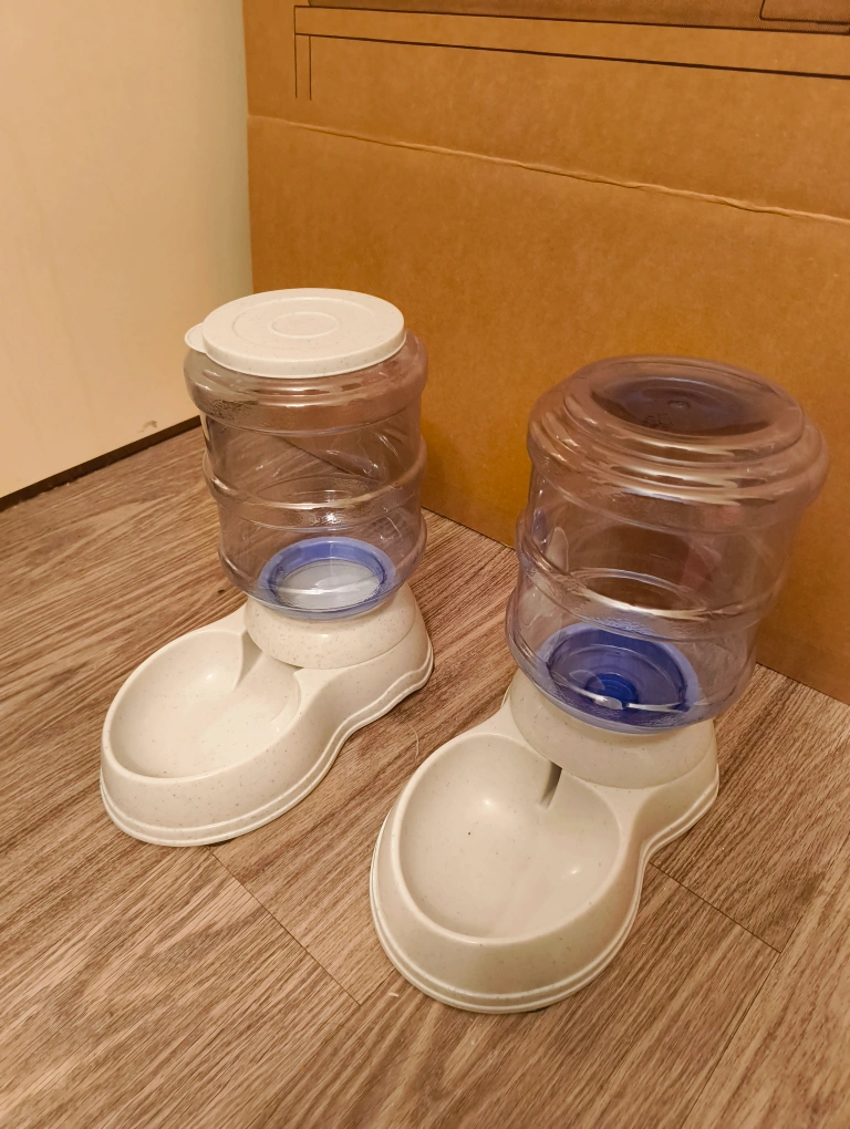 1 pet water dispenser, 1 gallon capacity & 1 feeder, 6 pounds capacity, with lids and bowls