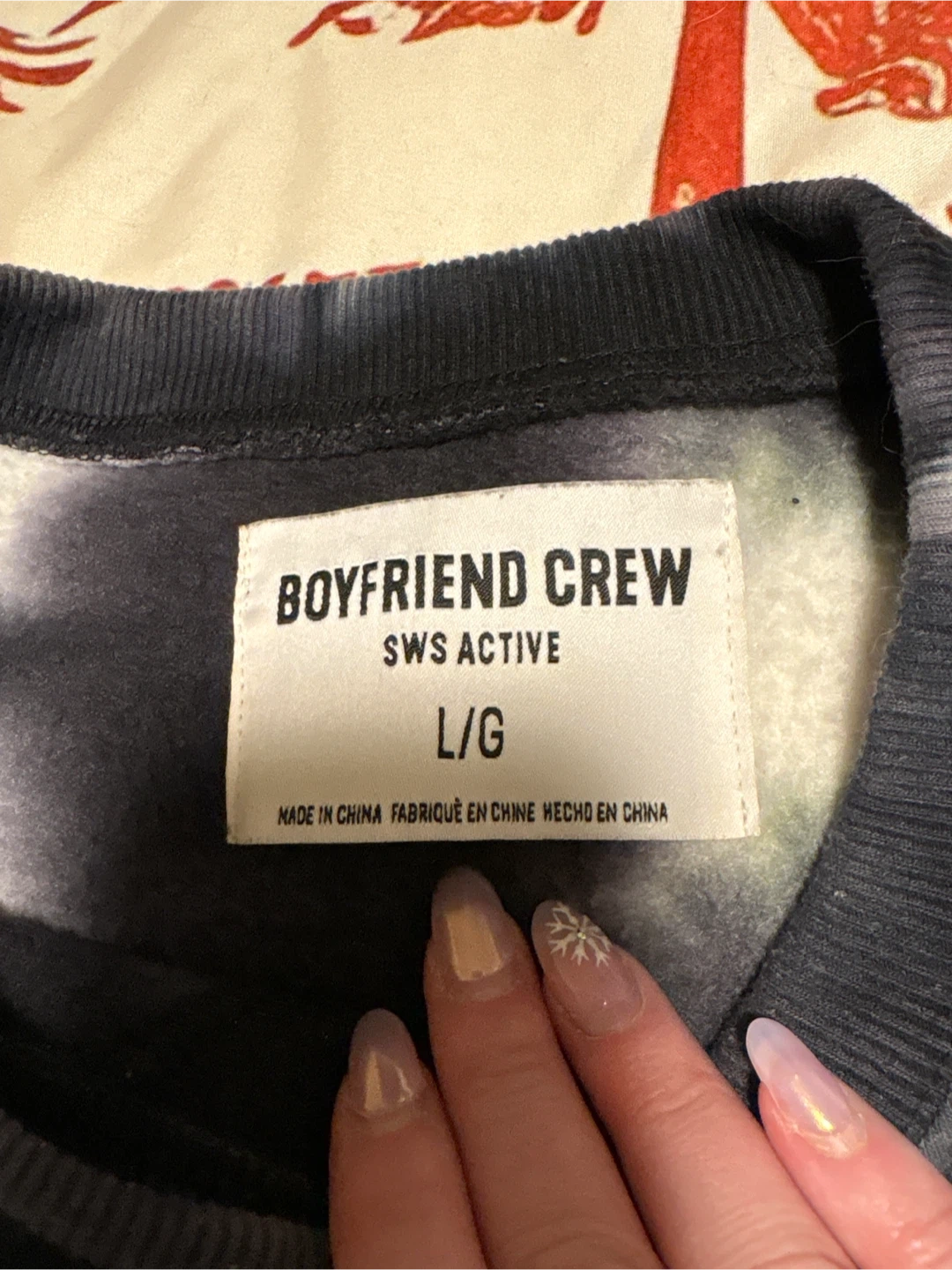 Selling a Boyfriend Crew sweatshirt! It's a tie-dye pattern in black and white.