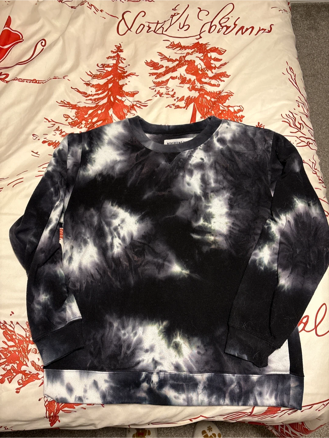 Selling a Boyfriend Crew sweatshirt! It's a tie-dye pattern in black and white.