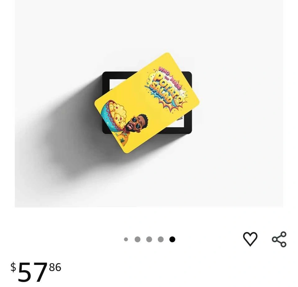 Buy & SellBrand new limited edition Who Made the Potato Salad party card gBrand new limited edition Who Made the Potato Salad party card g$45Brand new. Final sale. No exchanges or returns.WHERE TO MEETCheck LocationView MapSELLERverifiedMiss AFiddlesticks650 reviews0 chats·0 favorites·4 viewsSEND CHAT TO SELLERHi Miss A! I’m interested in your listing.Hi Miss A! I’m interested in your listing.Get the Karrot app to chatSign In to chat