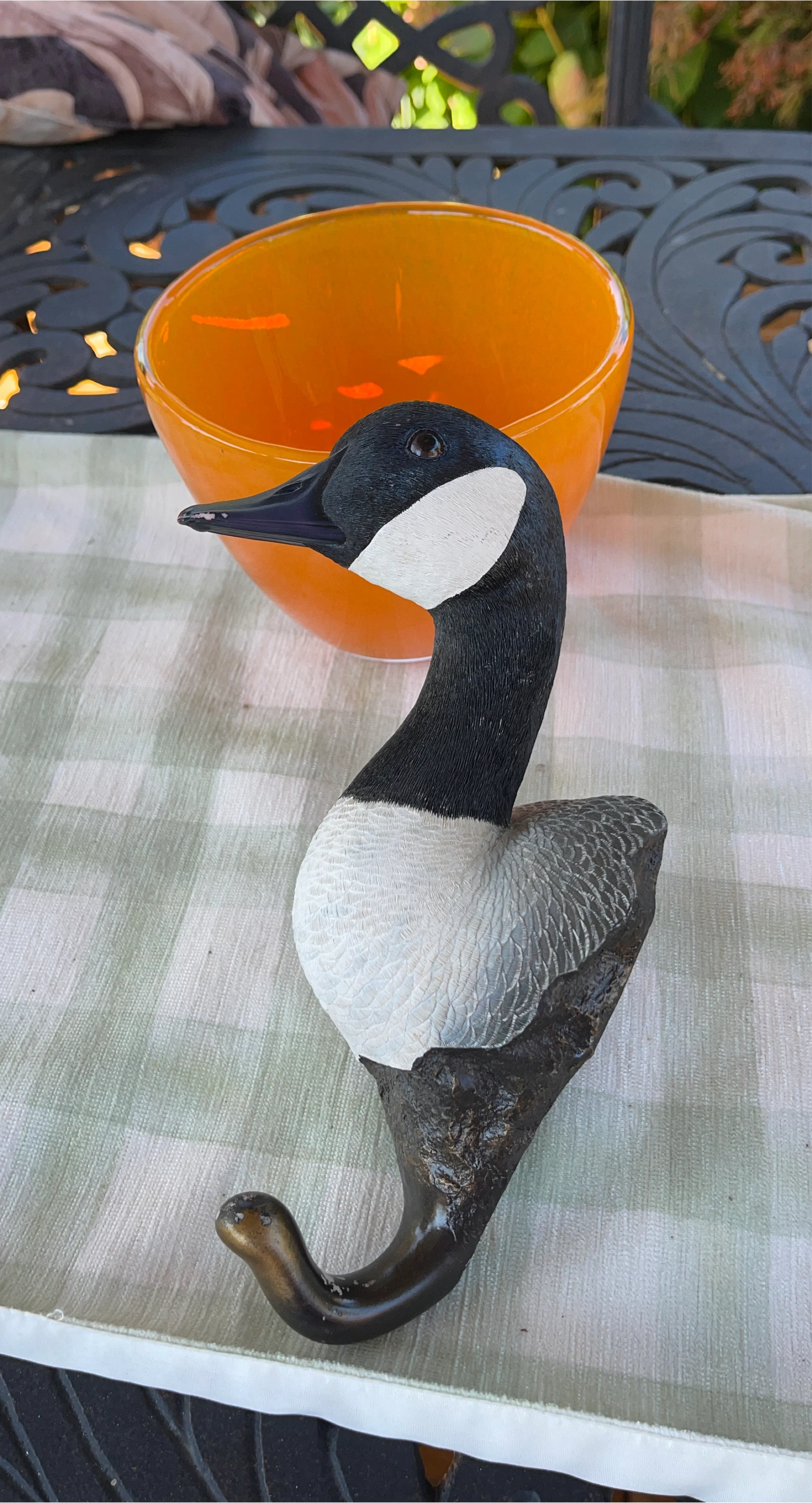 Here's a charming goose statue decoration. It's in great condition and would look lovely in any room. It's a unique and eye-catching piece!