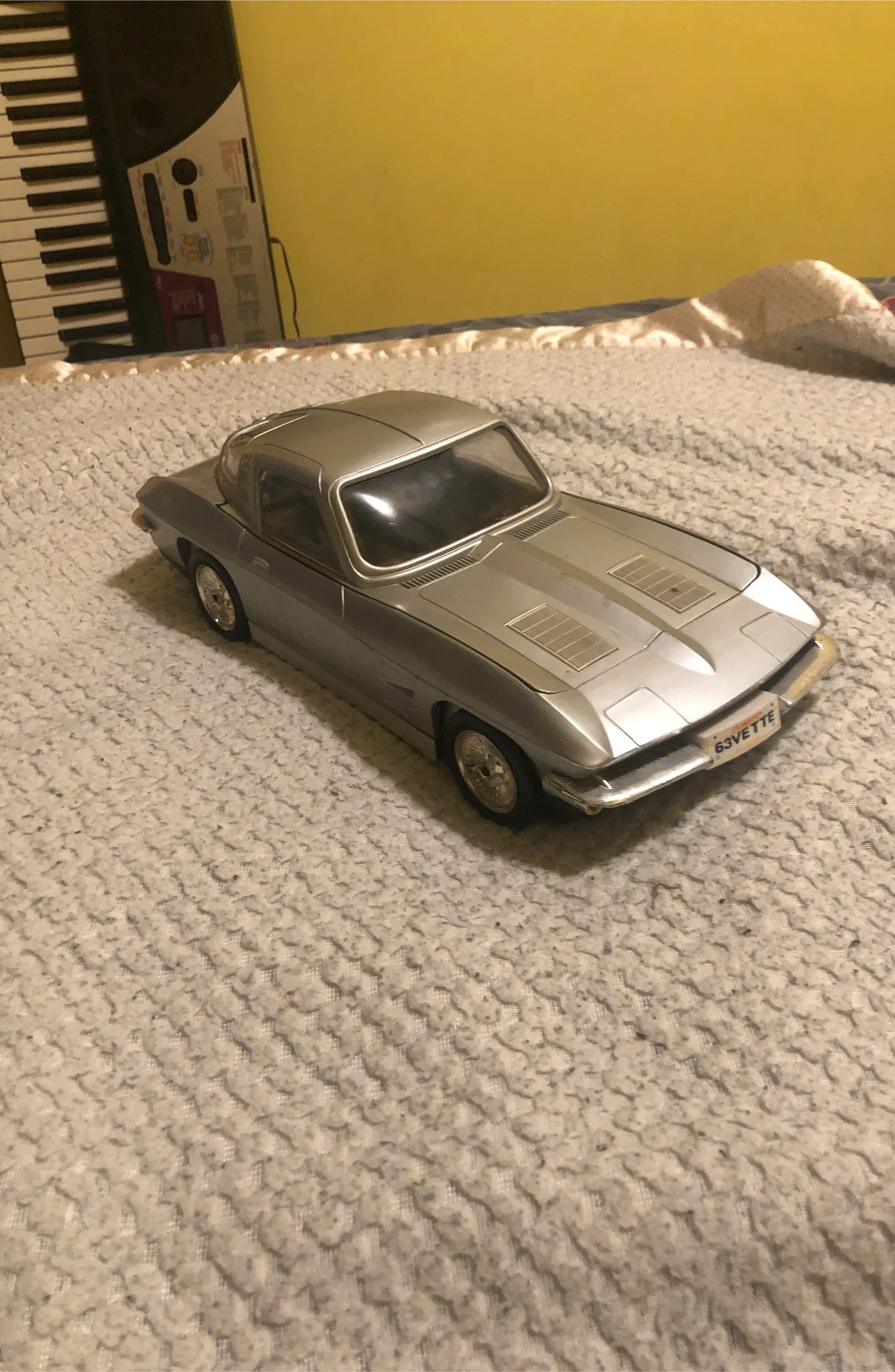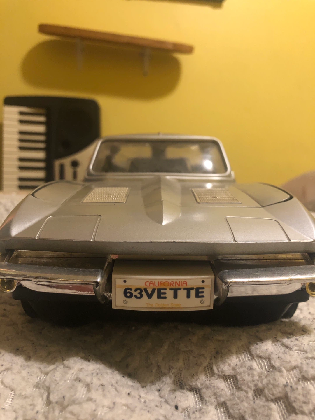 This is a diecast model of a 1963 Corvette. It's silver with a "63VETTE" California license plate. Made of metal and plastic. I am open to negotiation.