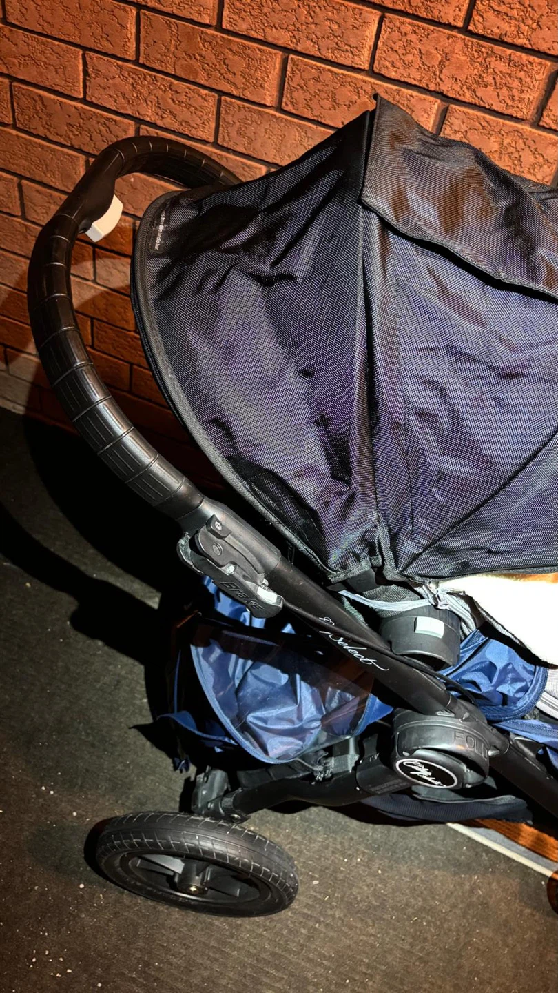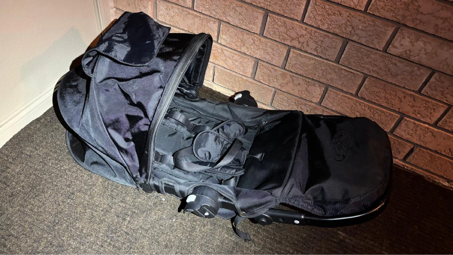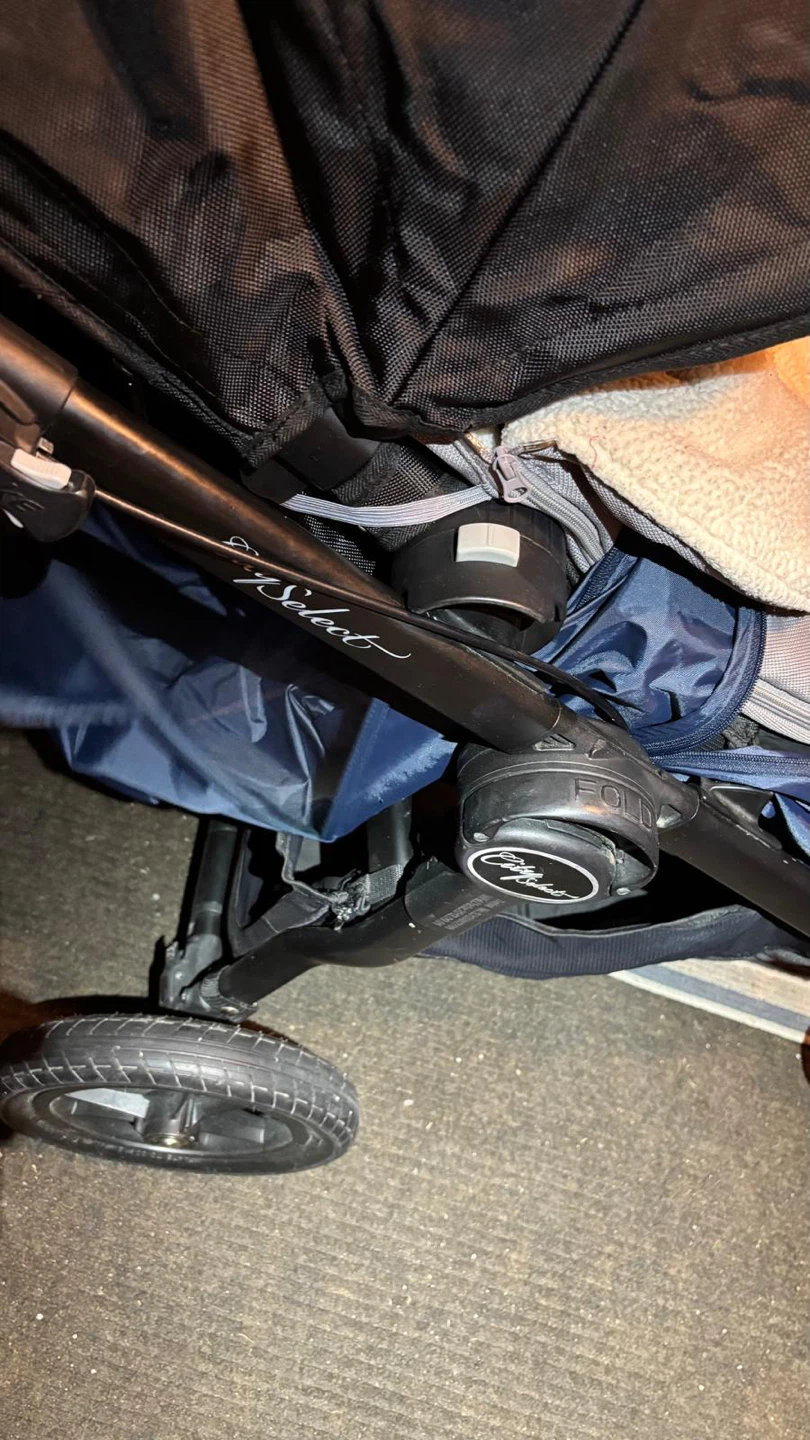 Versatile Baby Jogger City Select stroller system. Includes the main stroller with one seat and a super cozy white liner. Also comes with an extra seat or bassinet attachment, so you can configure it how you need. Super handy for one kiddo or two. Easy to fold and push around.