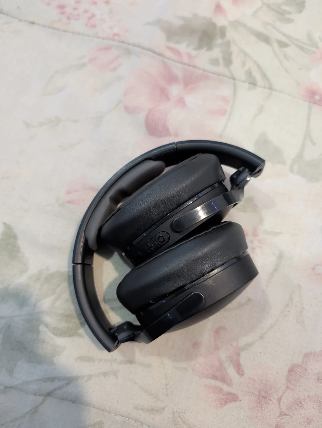 Selling a pair of Skullcandy Hesh ANC wireless headphones in black! These headphones offer wireless simplicity with noise cancelling. The box is included. They are flat-folding and collapsible for easy storage. Includes original box, carrying case, and charger cable. The headphones cups are in good condition but the hinge is cracked. Hinge is still fully functional. All internals work perfectly well.