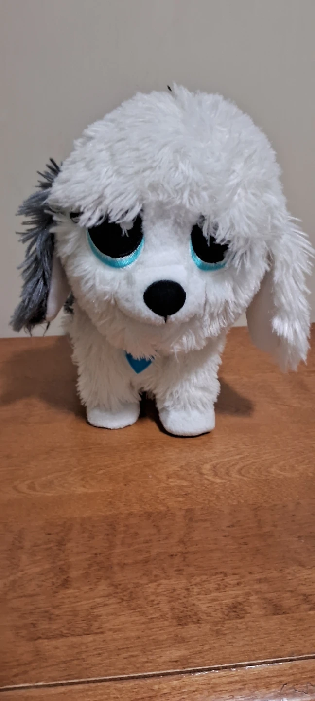 In great condition, this plush toy features soft, white fur with grey accents and the signature big, sparkly blue eyes that make Beanie Boos so collectible. Perfect for kids and collectors alike! This toy has been gently used and is still in excellent. It barks, walk, sit and dance.