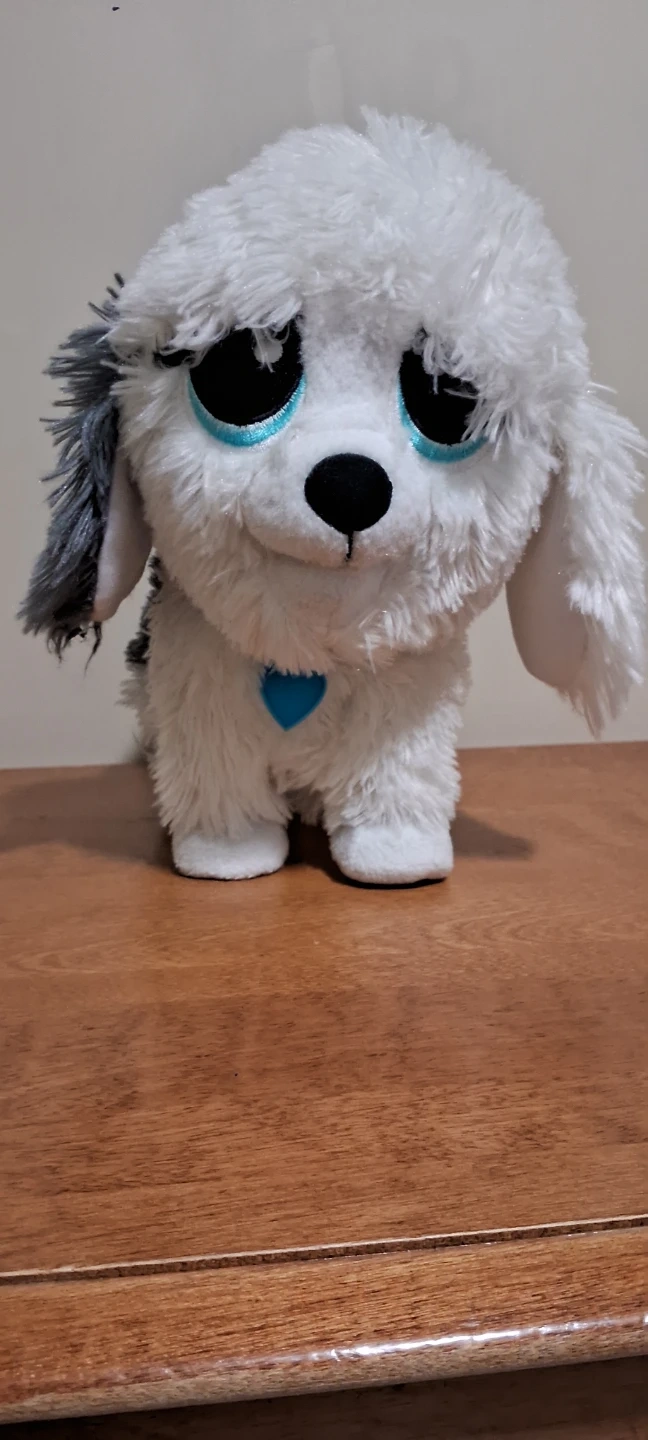In great condition, this plush toy features soft, white fur with grey accents and the signature big, sparkly blue eyes that make Beanie Boos so collectible. Perfect for kids and collectors alike! This toy has been gently used and is still in excellent. It barks, walk, sit and dance.