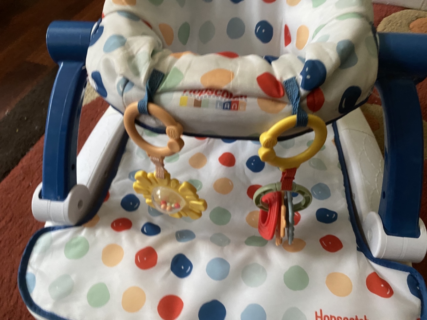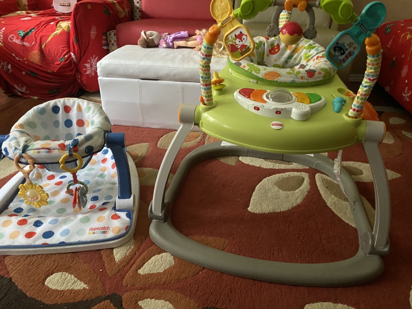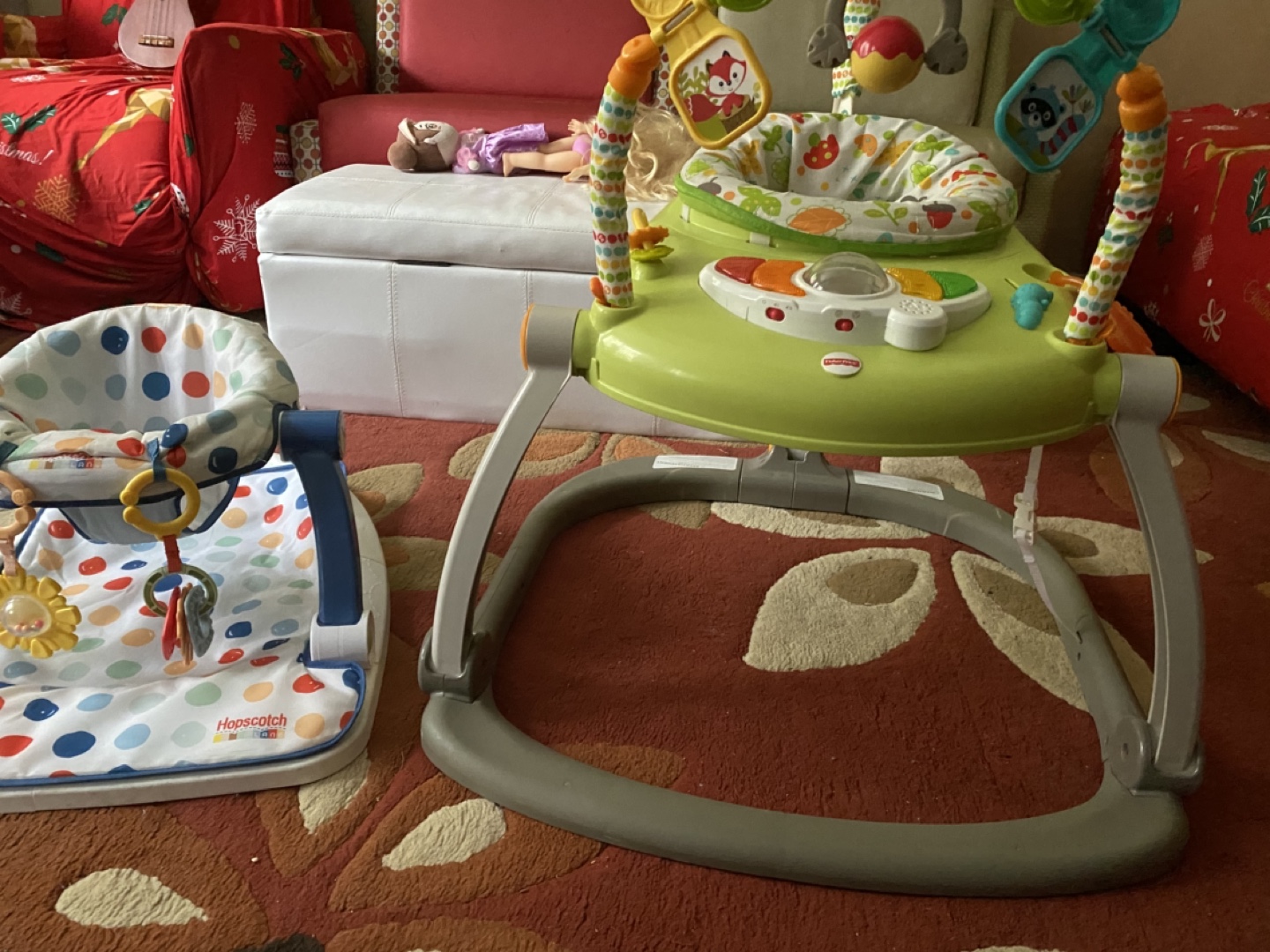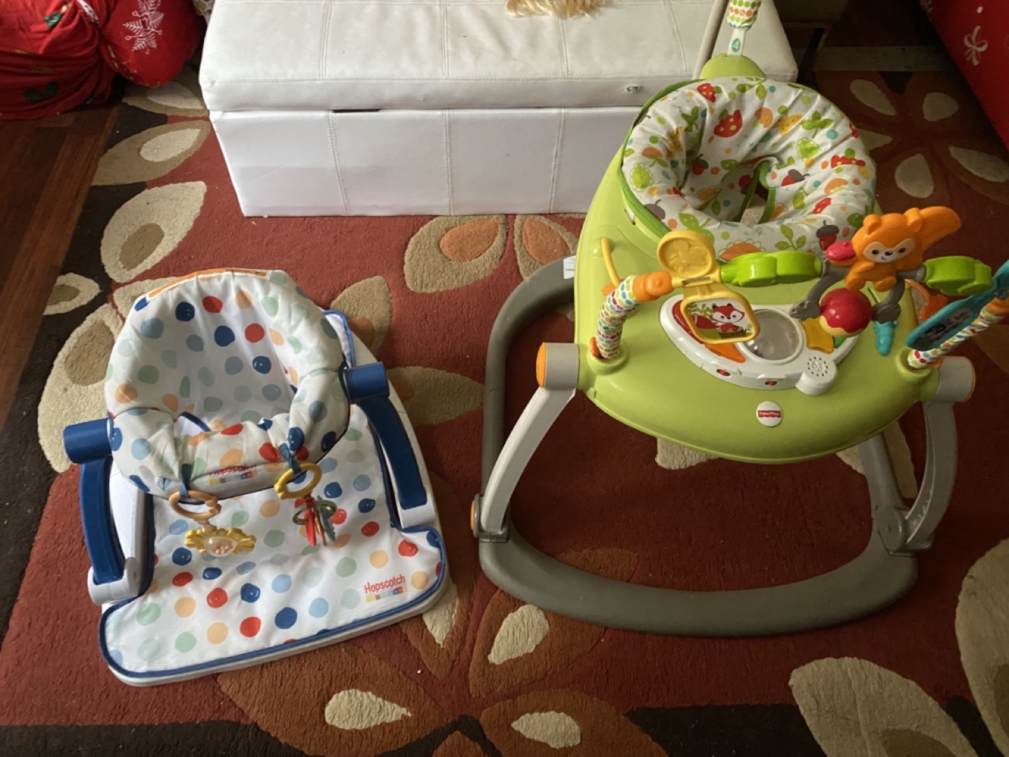 Bundle includes a Fisher-Price baby jumper and a Hopscotch floor seat. Both feature fun activities for babies