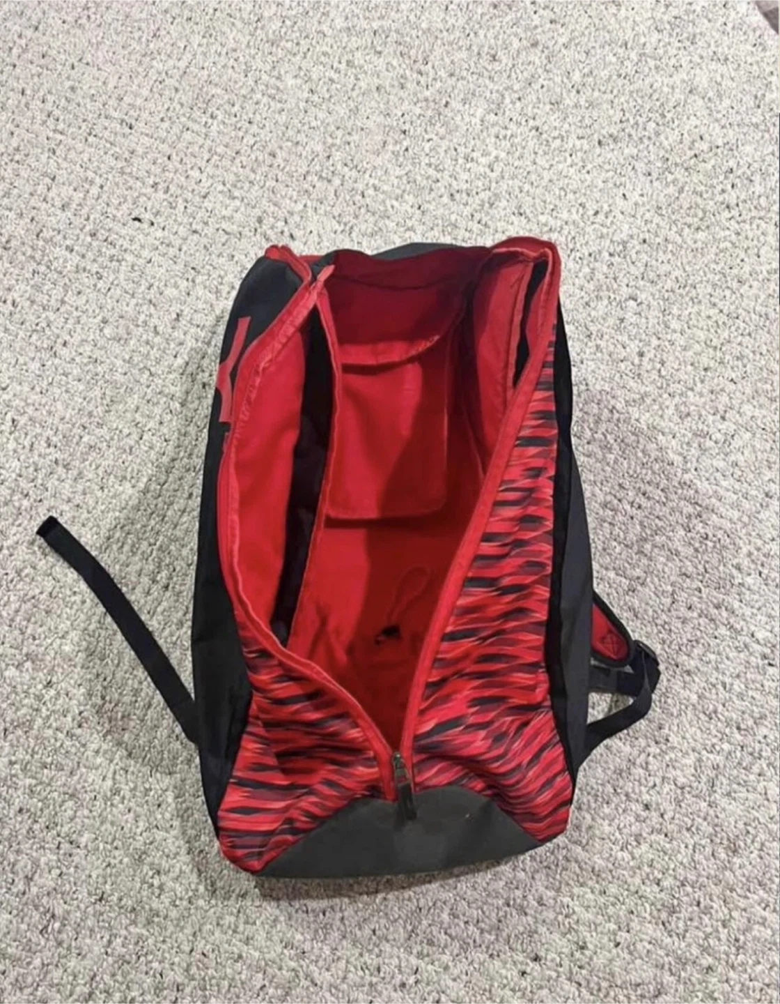 Selling a Nike KD backpack in black and red. It's in great shape and ready for a new owner. Perfect for school, sports, or everyday use