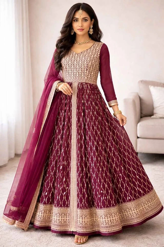Purple/Maroon Georgette Sequin Embroidered Anarkali Suit