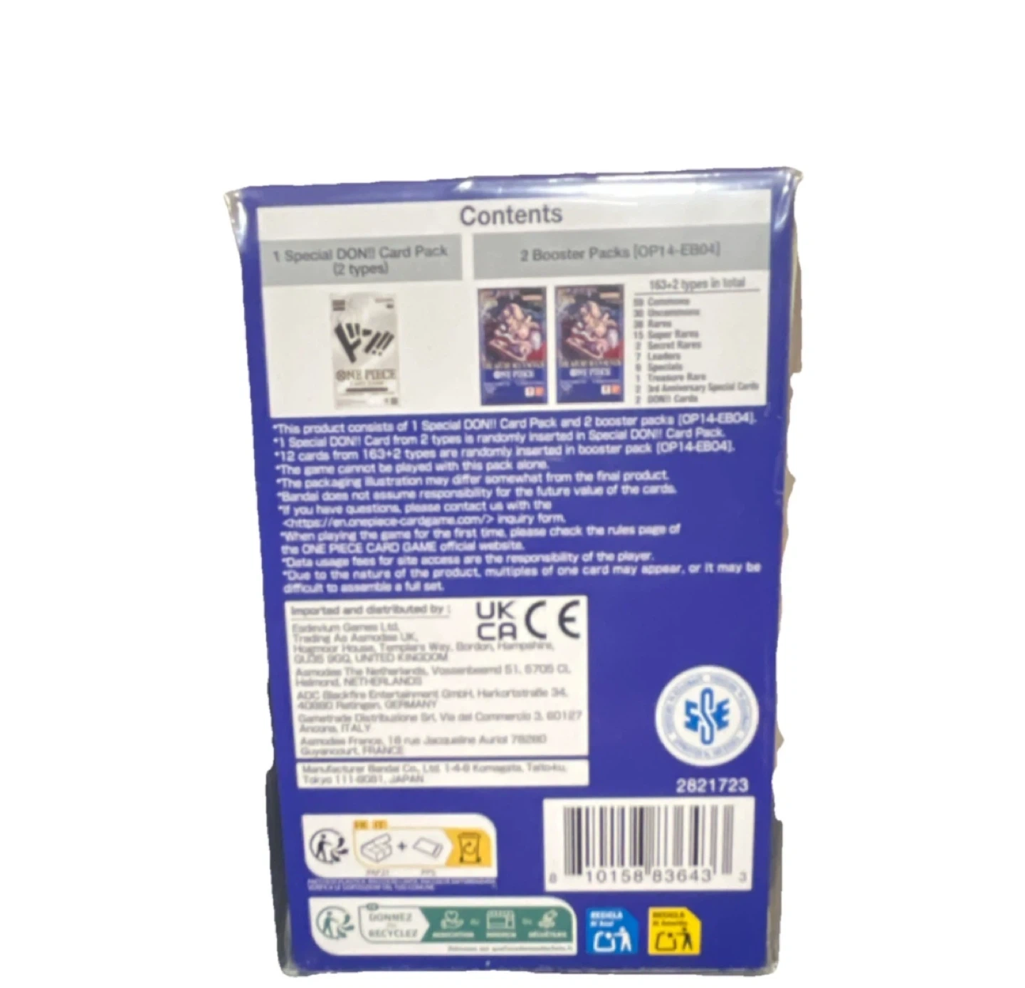 This is The Azure Sea's Seven Double Pack Set 9 for the One Piece Card Game. It includes 1 Special DON! Card Pack and 2 Booster Packs.