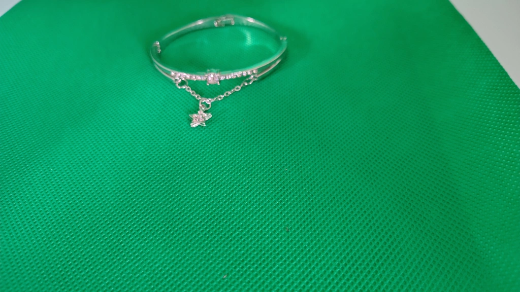 Selling a cute silver bangle bracelet! It features a delicate design with a star charm. Perfect for adding a touch of sparkle to any outfit!