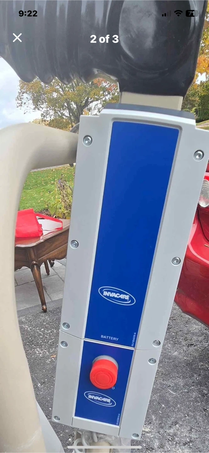 Invacare patient lift with two battery units. This lift is designed for safe patient transfers. It has a weight capacity of 450 lbs. Ask about hoyer slings if you require them.