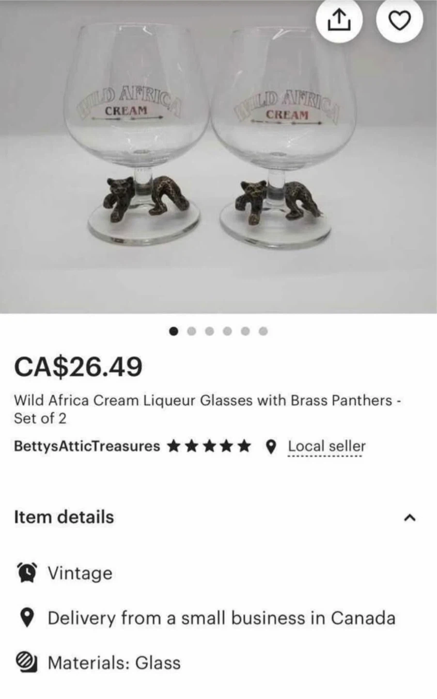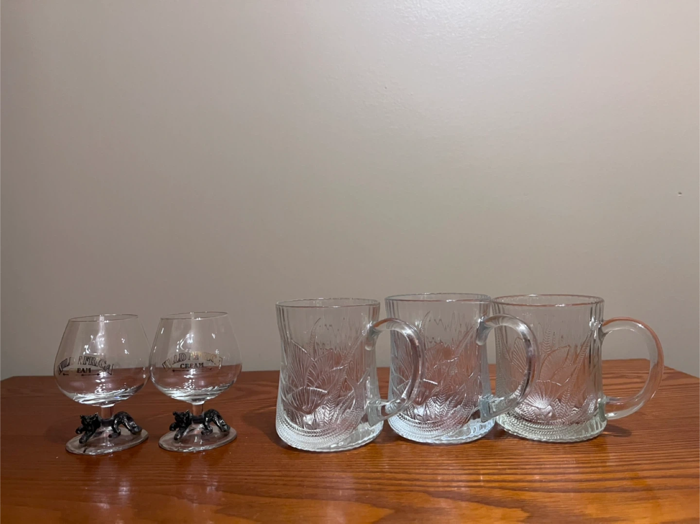 $20 Vintage pair of Wild Africa Cream Liqueur glasses with brass leopard.