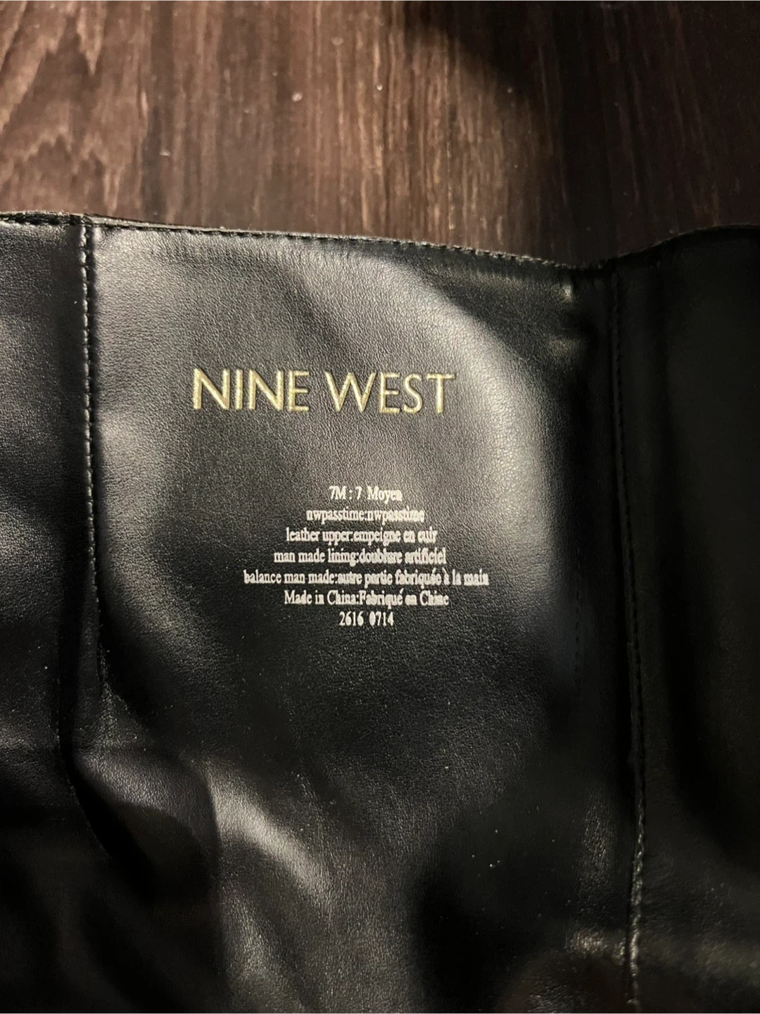 Classic black knee-high boots from Nine West. Leather upper with a synthetic lining and sole. These boots feature a side zipper for easy wear.