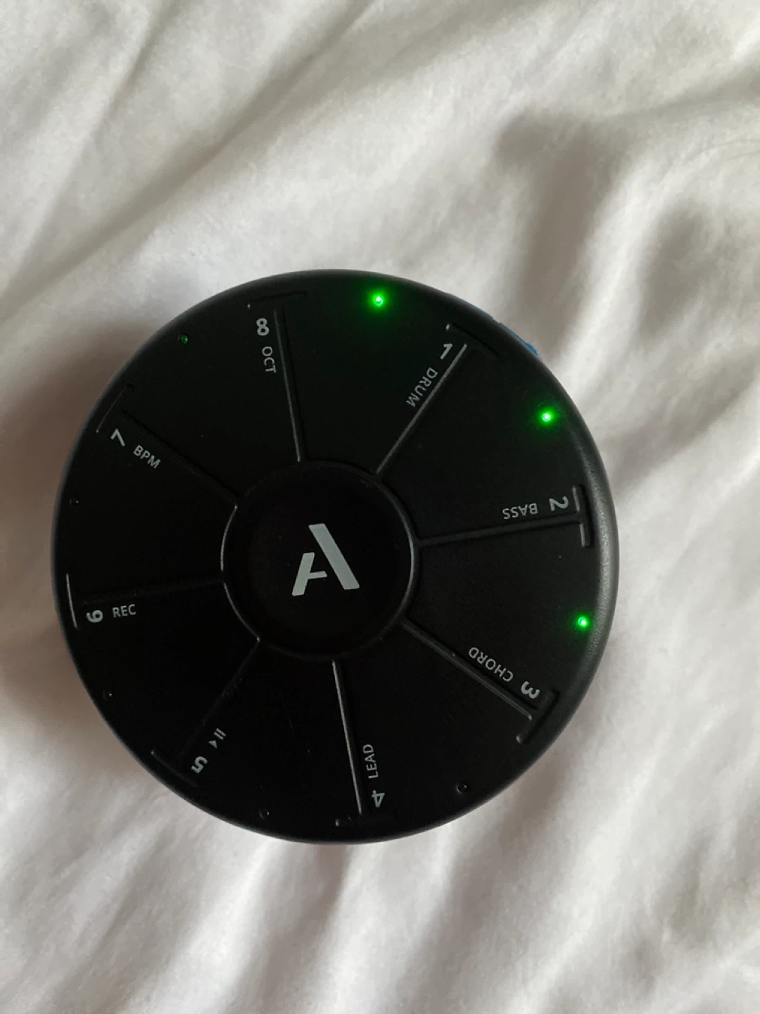 This is an Artiphon Chorda music maker. It has modes for drum, bass, chord, lead, and record functions. It also includes BPM and octave controls.