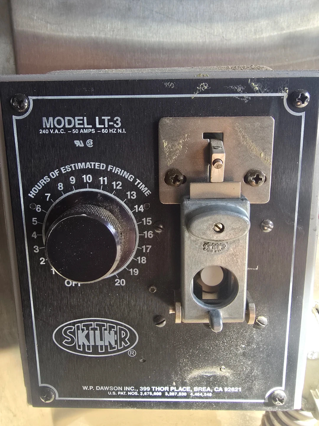 This is a LT-3 kiln. It runs on 240 V.A.C. and uses 50 amps. The estimated firing time is adjustable up to 20 hours. It's great for firing pottery and ceramics. Can be tested upon request.